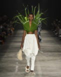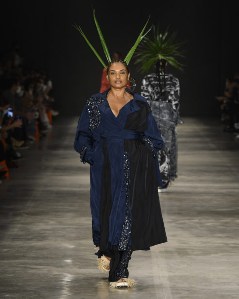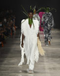 Destaque para as criações majestosas em palha, que passeiam e floreiam a passarela, com belíssimo movimento. As criações de Luiz Cláudio também ganham nova vida com o trabalho do artista Labo Young, que faz suntuosos acessórios, máscaras e inserções de styling com folhas e plantas. A ex-BBB e influencer Camilla de Lucas também faz sua estreia nas passarelas no evento pela etiqueta com o principal look do desfile, feito de palha, em um debut de grande estilo encerrando o desfile. (Luxas Assunção)