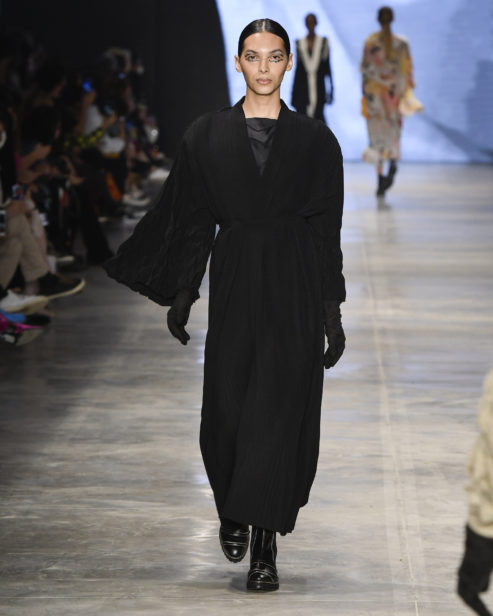 Esta coleção tem uma cartela enxuta de cor, só existem as essenciais e que precisam estar ali - e nos deslumbramos especialmente com os vermelhos. As texturas e direções dos plissados injetam vida nas roupas, nos fazem querer tocar, vestir e sentir seu balançar no corpo.