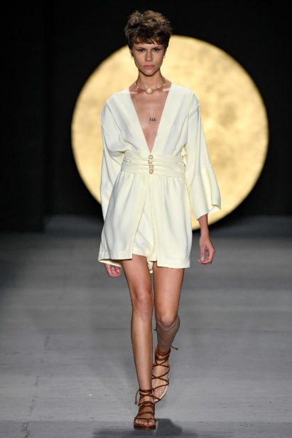 Grávida de sete meses, Lilly Sarti apresentou seu desfile para o Verão 2020.