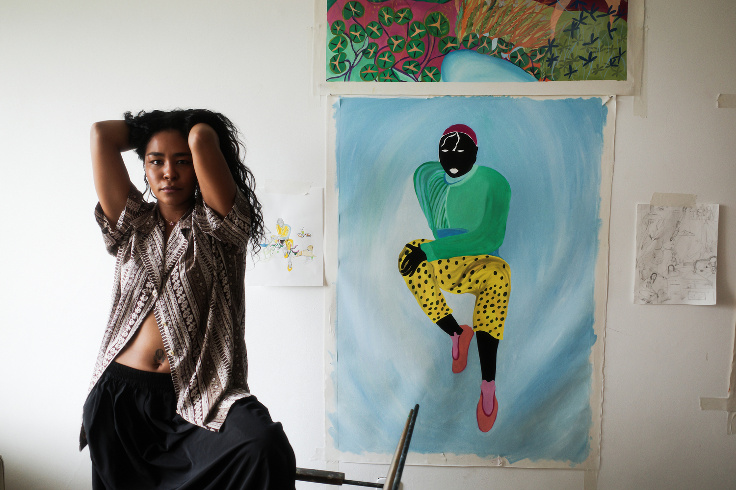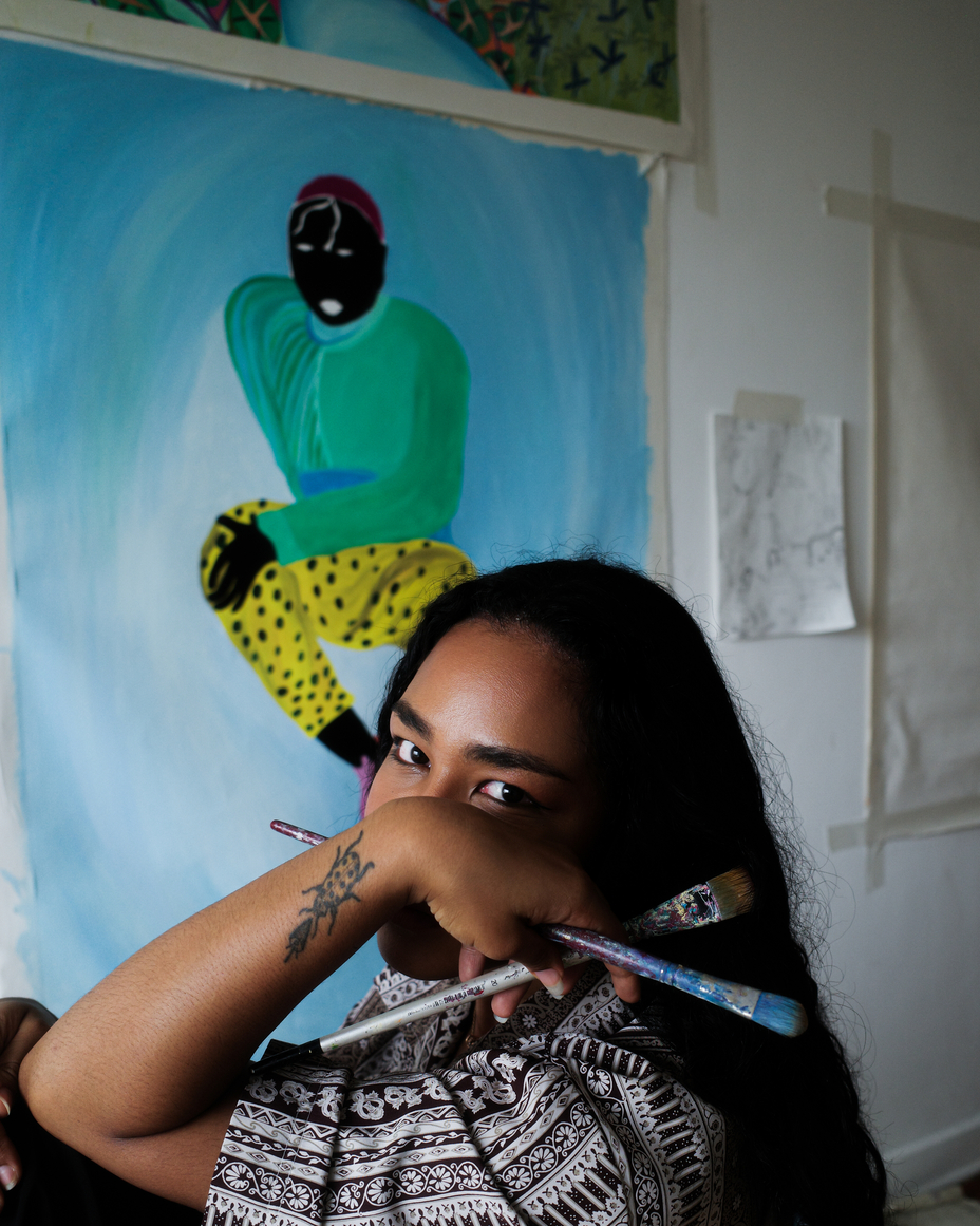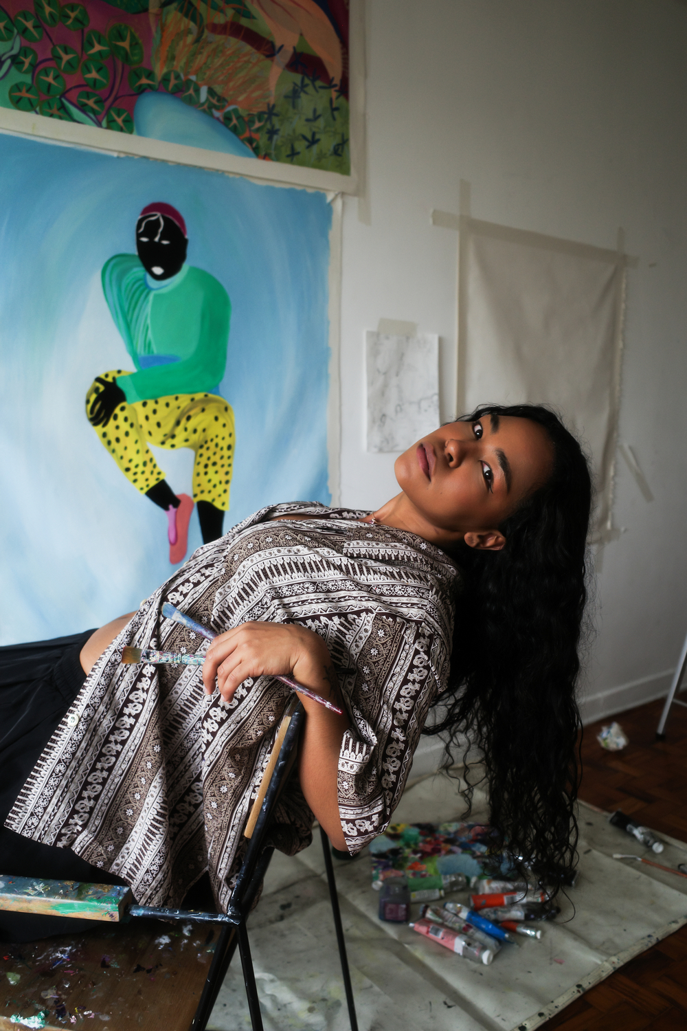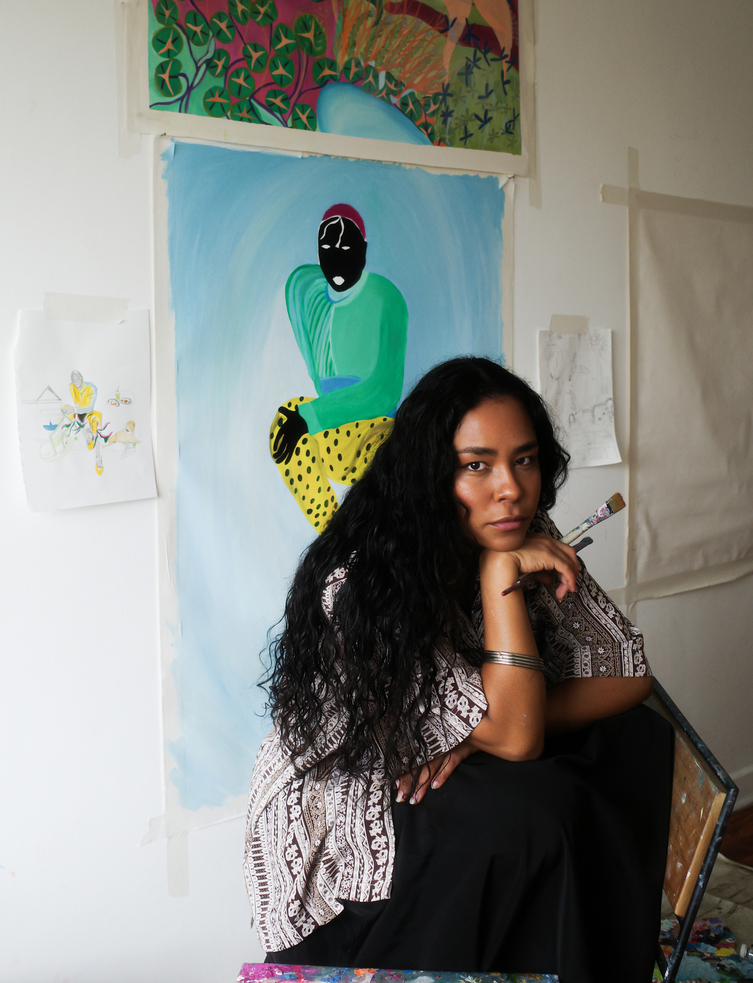 Artista visual e pintora, ela desenvolve uma pesquisa sensível a partir da vivência, da identidade e da intuição, criando imagens que misturam natureza, corpo e memória.