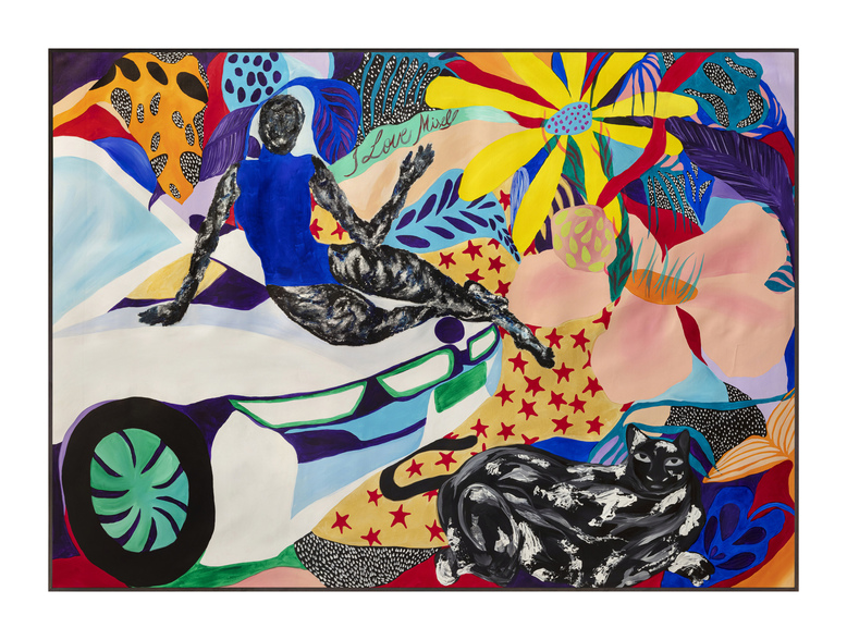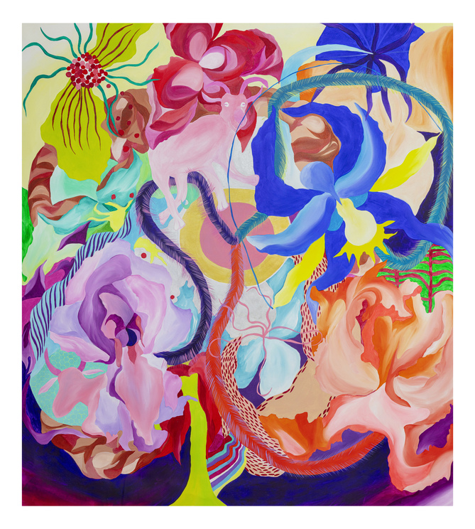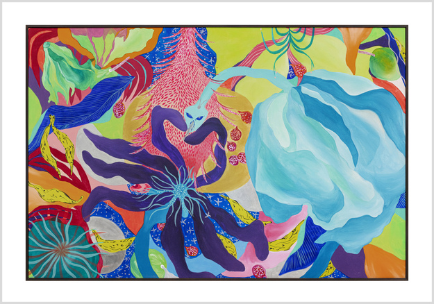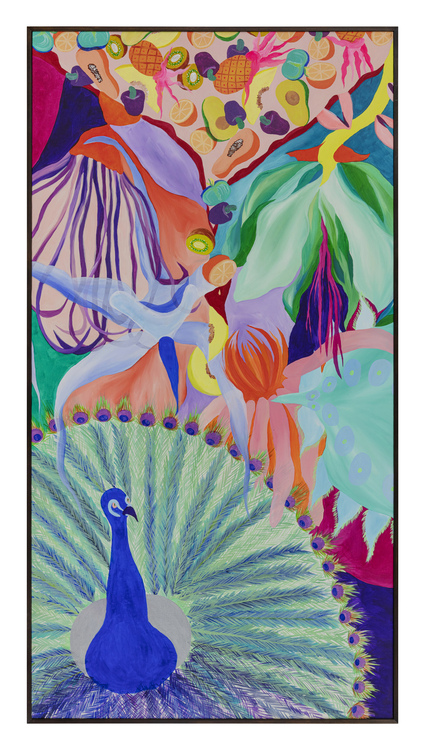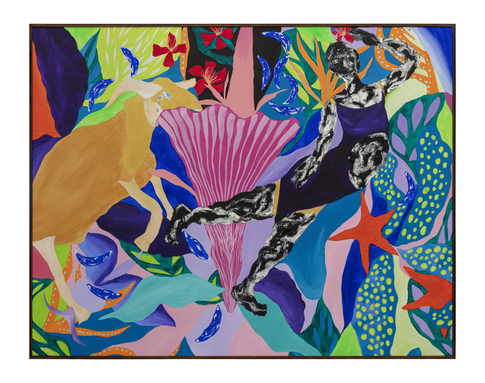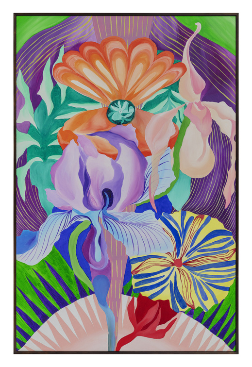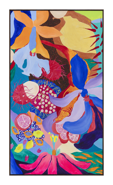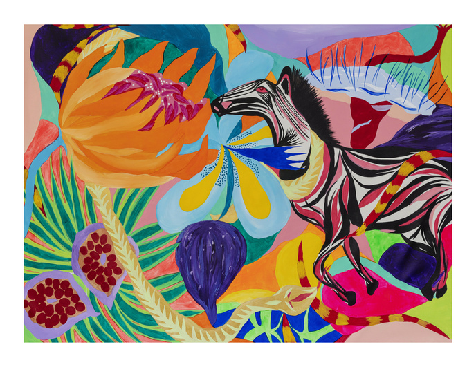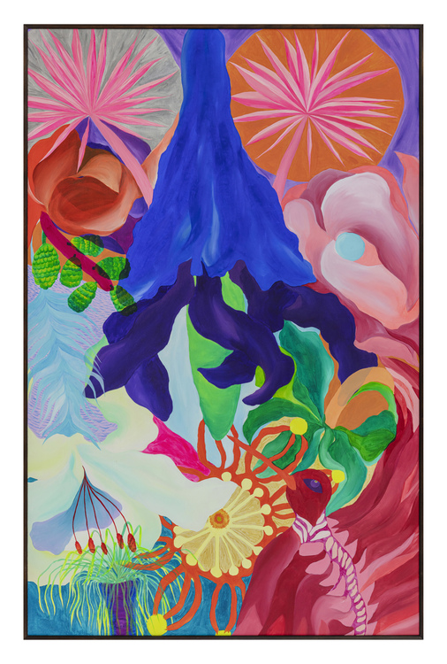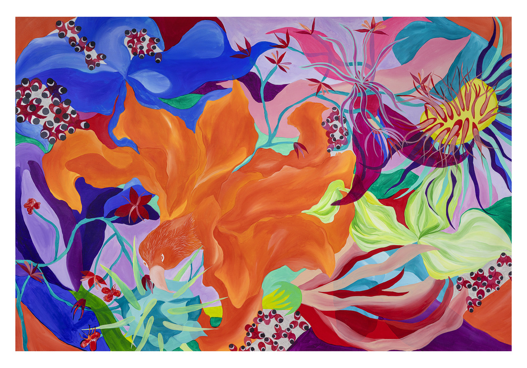 Ao longo de mais de sete anos de pintura, sua produção se consolidou como um território de liberdade visual. Em suas telas, natureza, figuras humanas, cores, texturas e padrões se misturam de forma orgânica, sem hierarquias rígidas ou compromissos com estéticas pré-estabelecidas. Seu olhar é atravessado pelo corpo, pelo tempo lento e pela atenção aos detalhes, criando imagens que partem do real, mas nunca se encerra nele.
