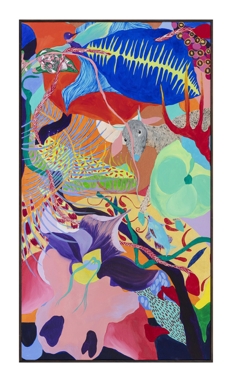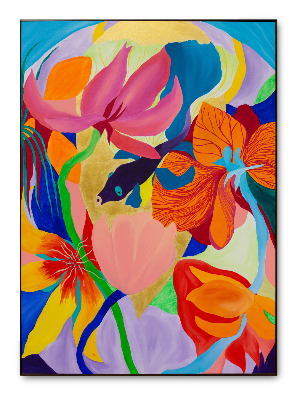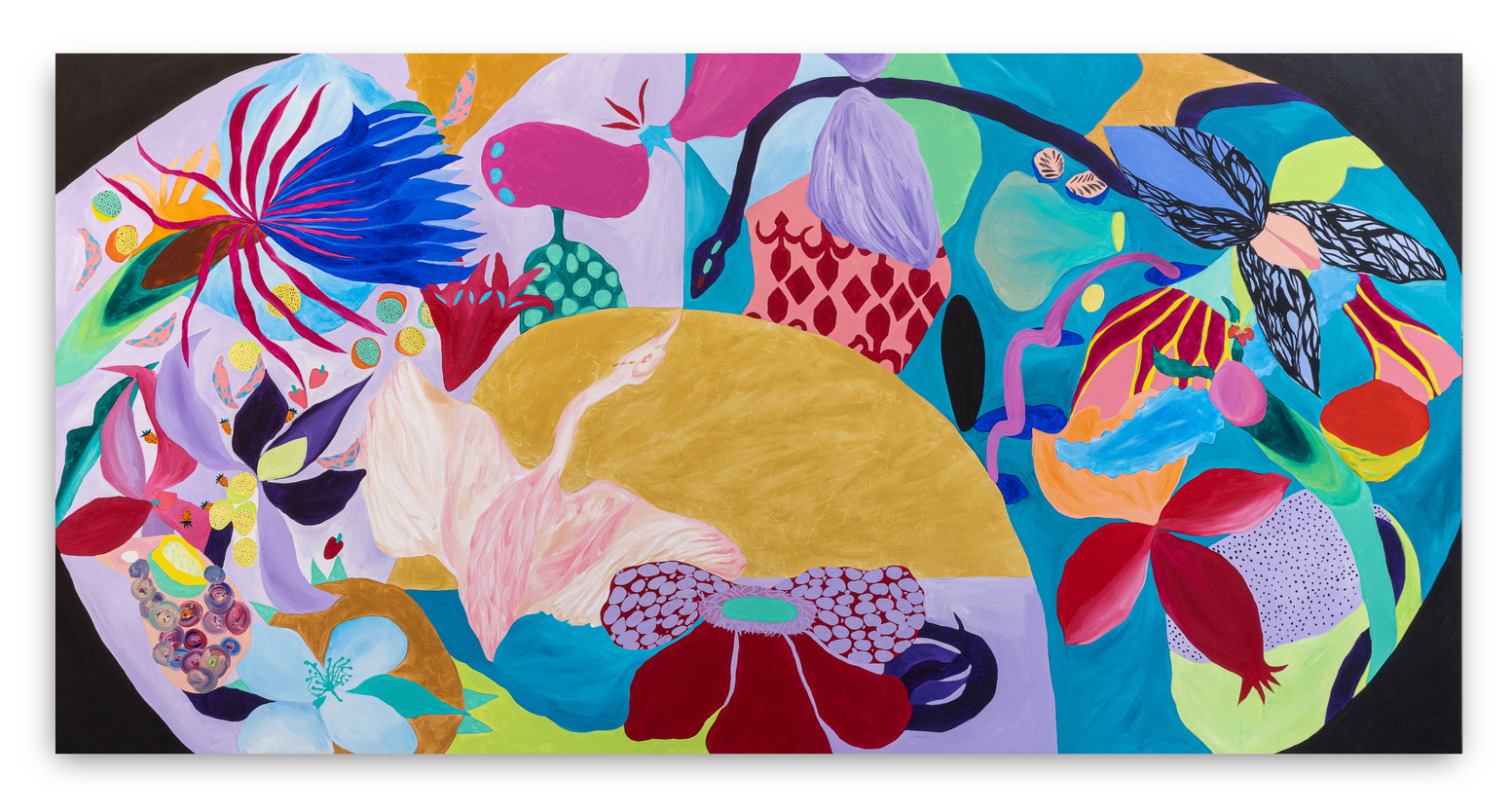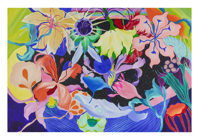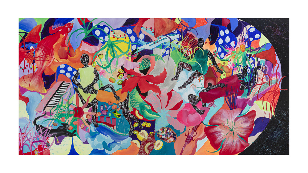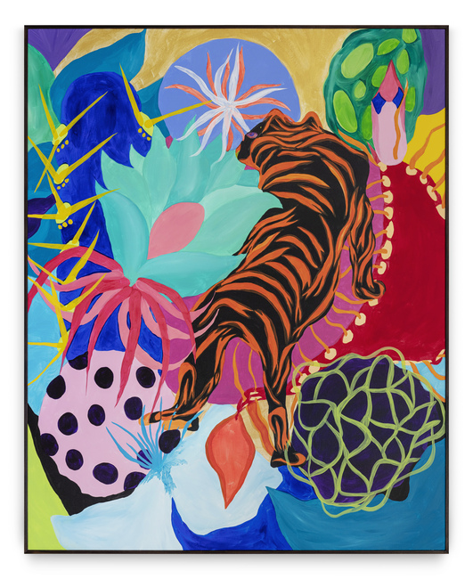 Ao longo de mais de sete anos de pintura, sua produção se consolidou como um território de liberdade visual. Em suas telas, natureza, figuras humanas, cores, texturas e padrões se misturam de forma orgânica, sem hierarquias rígidas ou compromissos com estéticas pré-estabelecidas. Seu olhar é atravessado pelo corpo, pelo tempo lento e pela atenção aos detalhes, criando imagens que partem do real, mas nunca se encerra nele.