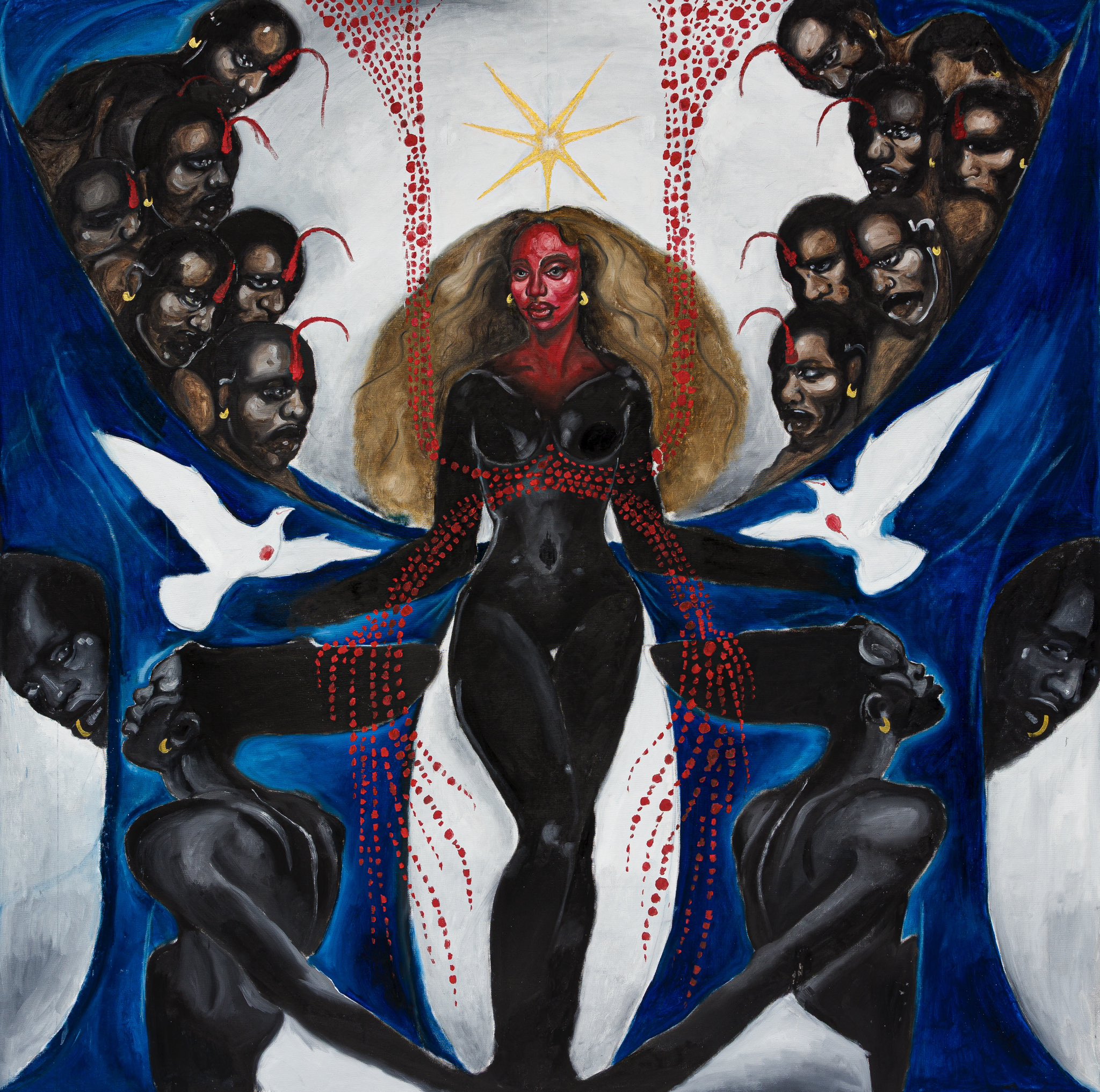 Sua obra é simbólica, espiritual e política. Dialoga com a ancestralidade, com a cultura preta e LGBT+, e utiliza o afrofuturismo como ferramenta para imaginar e denunciar. “Meu trabalho é sobre preocupação”, afirma. É gesto de cuidado, resistência e celebração.