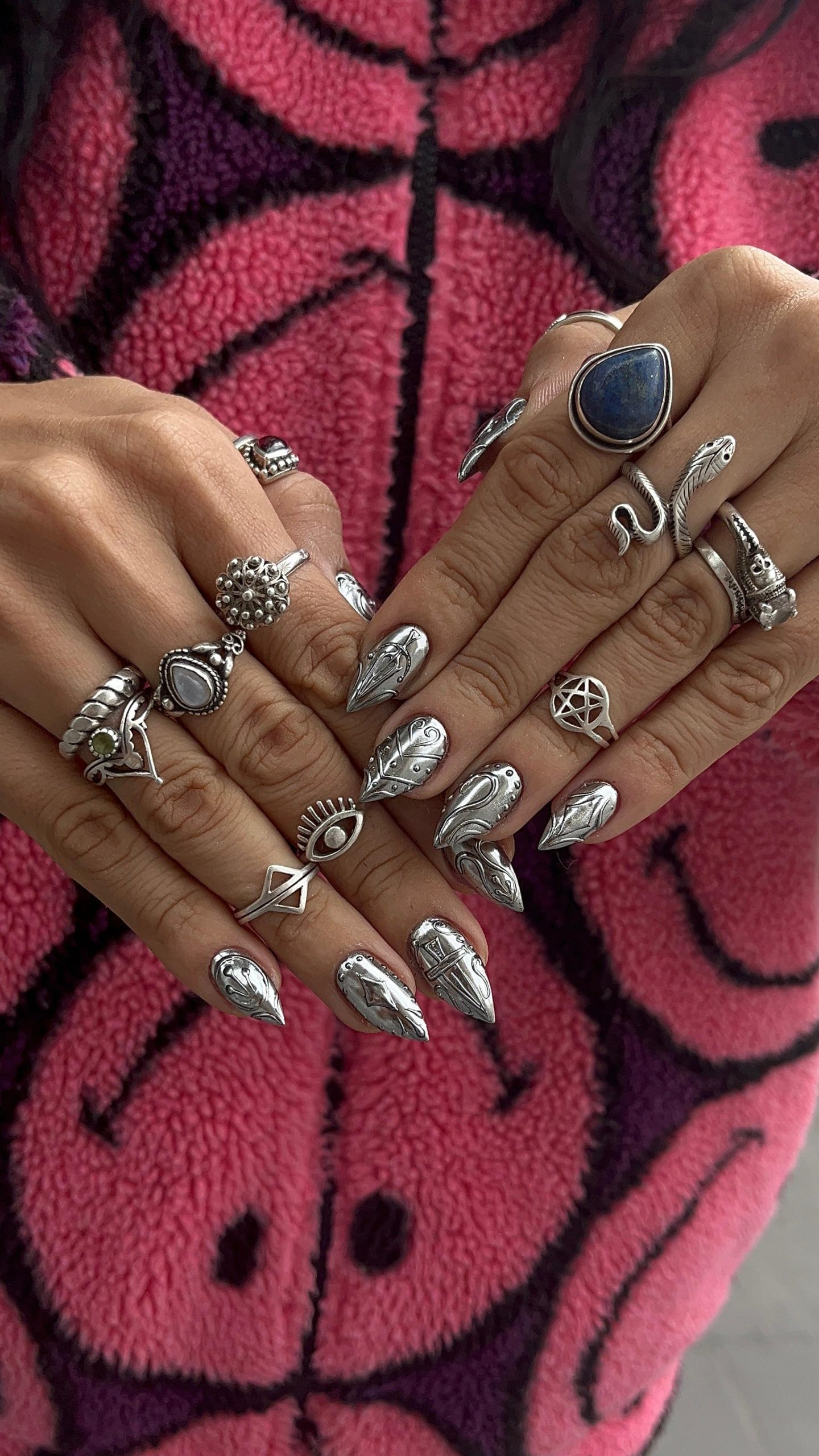 Cara, é muito foda! Porque, apesar de serem telas pequenas, são dez telas pra trabalhar e isso dá um espaço incrível para explorar estética e criatividade. Eu amo esse tipo de trabalho porque me desafia a traduzir a identidade do artista ou o tema do editorial, mas sempre colocando um toque meu ali. É uma troca criativa muito intensa: eu me inspiro neles, mas deixo algo meu impresso também. No fim, é isso que eu acho mais bonito ver algo que eu criei sendo eternizado em um álbum, clipe ou editorial. Cada unha vira um pedacinho de arte única.