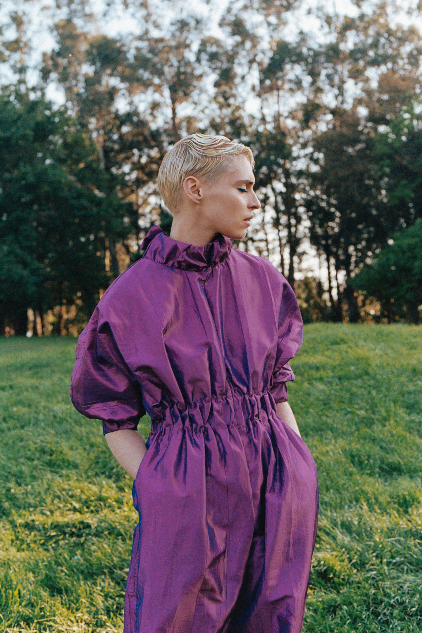 Nascida em 2016 com o intuito de “fazer barulho”, a marca portuguesa Buzina de Vera Fernandes é uma das marcas que expressam romantismo com muita dramaticidade. Formada em psicologia, Vera mantém seu olhar atento ao exercício mais psicológico de todos: o vestir. A sua ligação com a moda veio de berço, com sua avó materna, que era modelista. No meio dos tecidos, texturas e formas, Vera criava histórias e personagens por meio dos panos. “A minha avó dava-me tecidos para me entreter e brincar. Eu passava as tardes a enrolar novelos, a fazer saias para mim”, recorda ela. Em 2013, após o nascimento de sua filha, ela estreou no mundo da moda com a Meninamanel, uma loja de moda infantil. Com a Buzina, ela pretende vestir mulheres pelos ideais de liberdade, segurança e irreverência, mas sem parar de pensar no meio social e ambiental. “A Buzina é uma marca sustentável, mas é importante que fique claro que isto aconteceu por consequência. Produzo tudo num raio de 11 km, desde a confecção ao fornecedor de tecido. A equipe da Buzina – desde costura a escritório – é constituída por mulheres de todas as idades, dos 20 aos 70 anos.”, explica Vera.