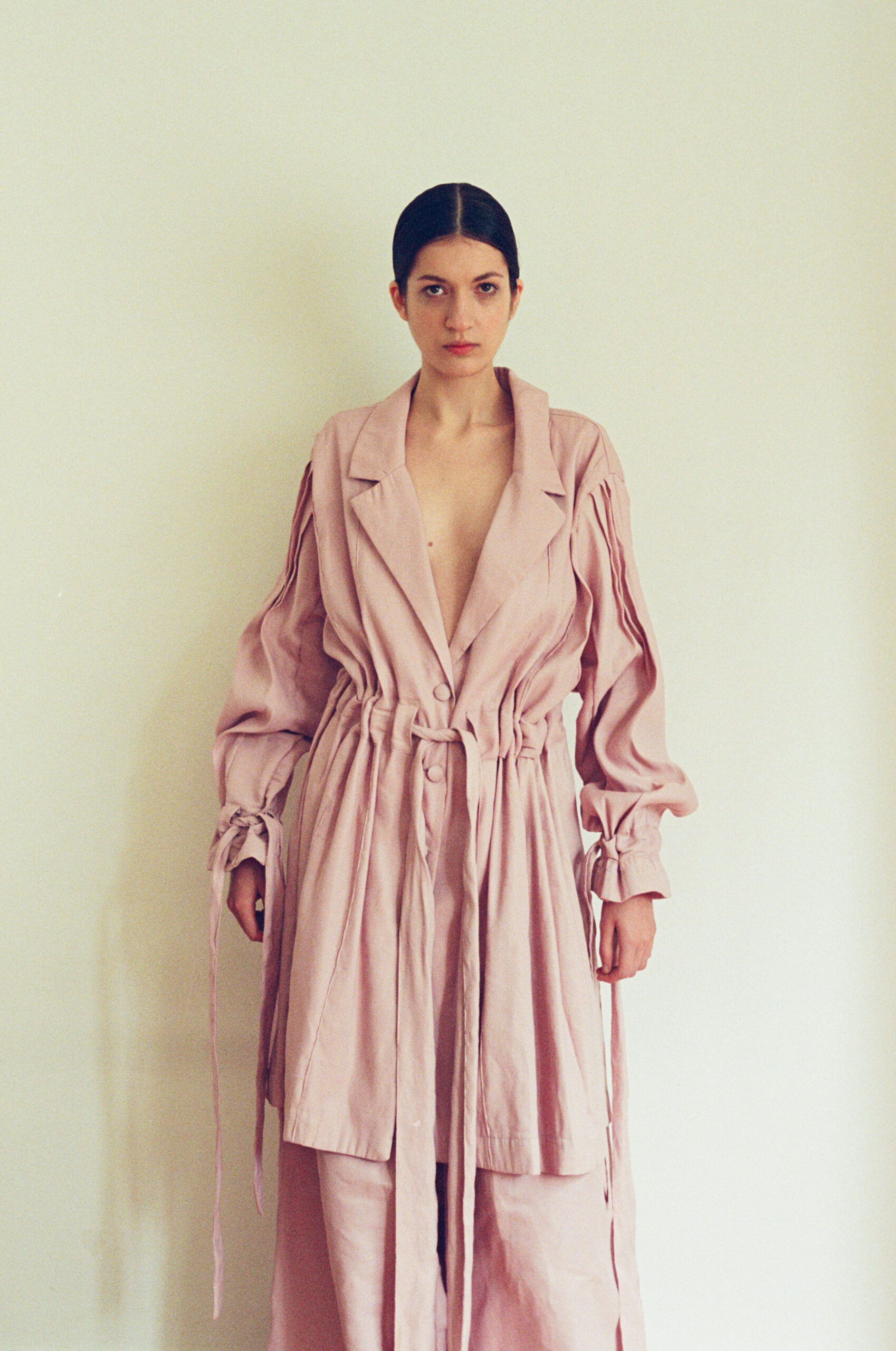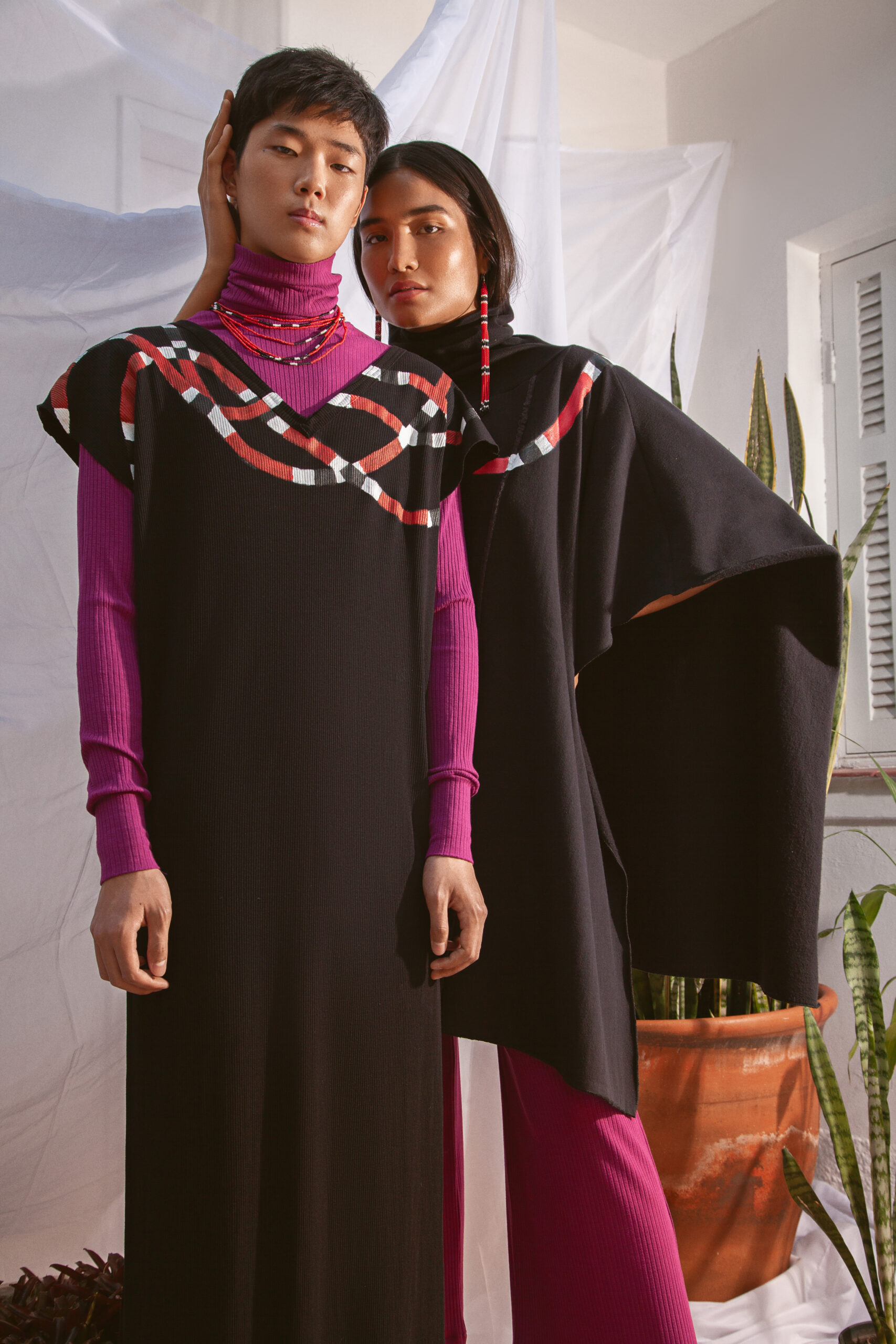 “Desde a faculdade eu falava sobre a cultura gay, sobre dilemas sociais e familiares, então, a moda que eu faço é pensada num local de experimentação”, comenta Lucas que reitera que tem como compromisso trazer corpos fora do padrão e LGBTs para desfilar suas roupas. “Eu gosto de trabalhar com mulheres e homens trans, homens e mulheres negras e corpos gordos. É muito importante colocar as pessoas que vivem essas narrativas em roupas sofisticadas também”. E bota sofisticadas nisso. As roupas sem gênero de shape oversized e fluidas são feitas em seda, algodão e linho, com uma atenção especial para os acabamentos, em especial nos plissados manuais e pregas. Para sua estreia, ele pretende uma coleção com referências a filmes de terror para ressignificar o ideal de beleza e o conceito de horror. “Vai ser um momento para apresentar uma forte imagem de moda que eu acredito ser uma coisa nova”, conclui.