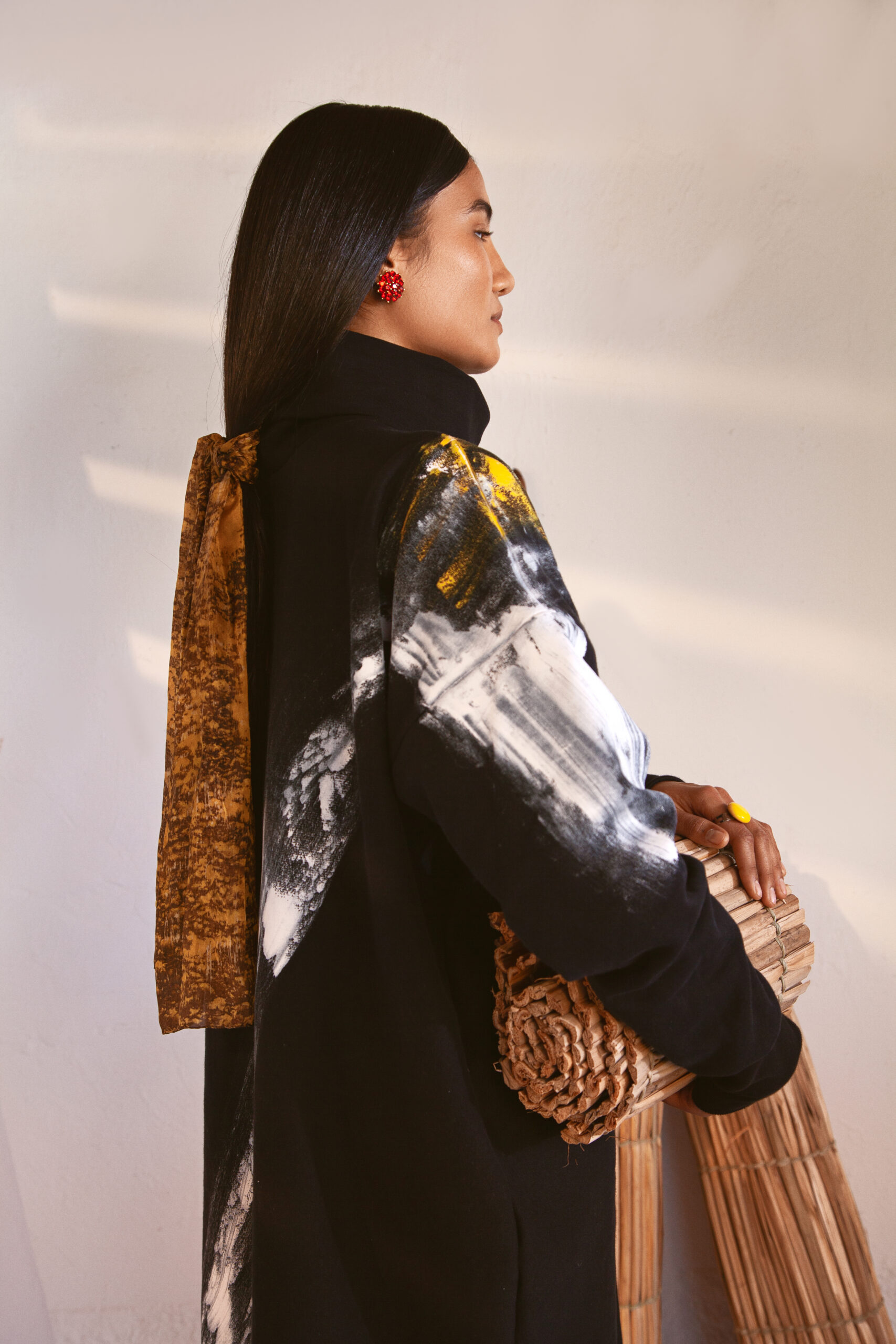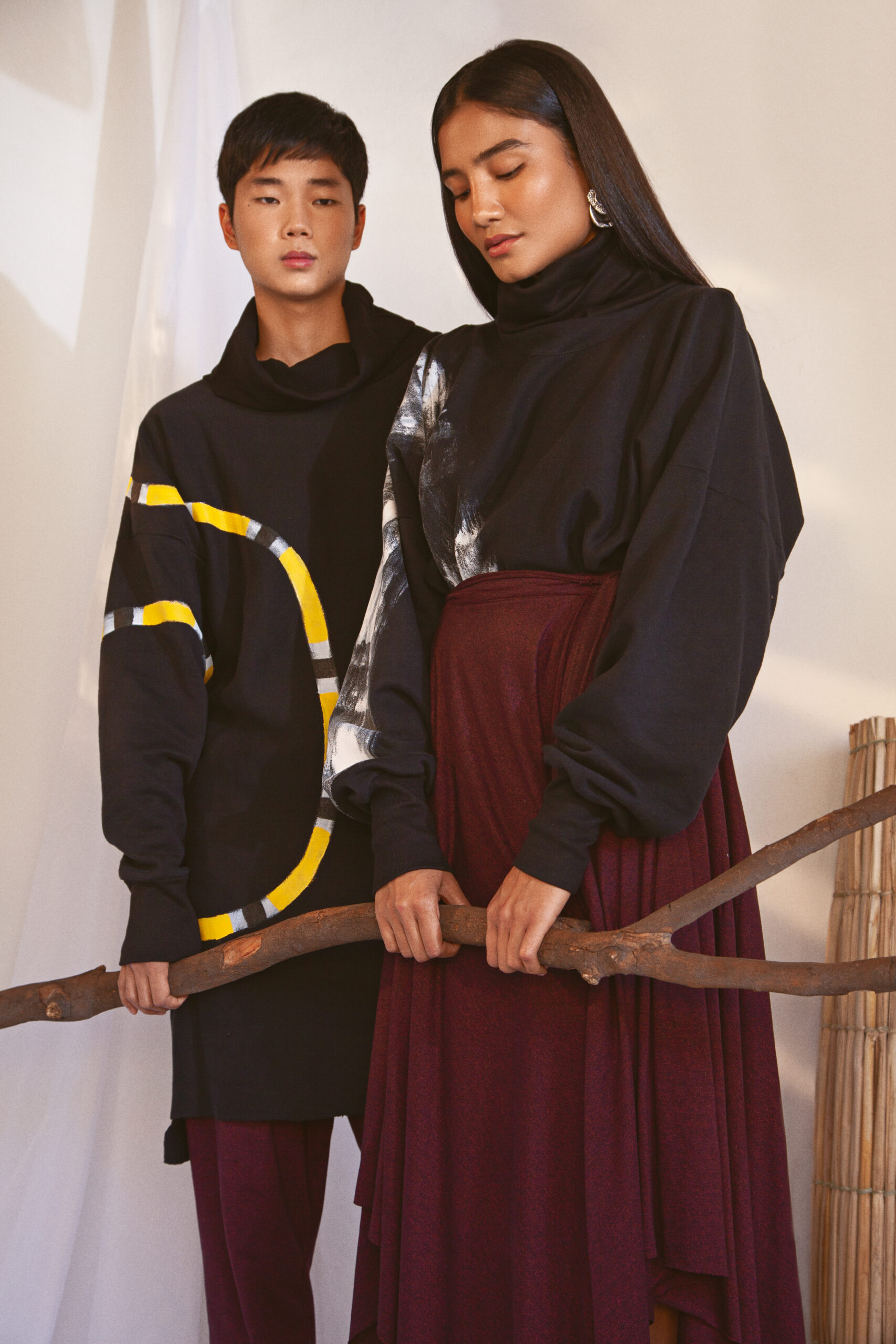 Originário de Manaus (AM), o designer Maurício Duarte apresenta sua marca homônima pela primeira vez com um fashion film gravado em seu Estado natal. “Não tinha como eu falar de minhas raízes sem estar nela, não tinha como falar do meu rio sem estar me banhando nas águas dele”, comenta o artista. Representando um dos novos nomes da moda jovem autoral, Maurício veio para São Paulo em 2016 para cursar design de moda na tradicional Santa Marcelina e desde então busca representar suas raízes originárias kaixanas em suas peças fluidas e sem gênero. O designer define suas roupas como telas que vestem corpos com afeto, expressando sua cultura por meio de grafismos indígenas e pinturas abstratas em peças feitas de algodão, que são sua marca registrada.