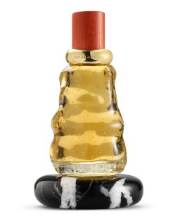 A garrafa em formato voluta faz uma homenagem à tradicional arte do vidro soprado de Murano. Replicando o efeito do vidro feito à mão, enquanto a base em mármore evoca as paredes, pisos e fachadas das igrejas e palácios venezianos. A coleção completa estará disponível nas lojas Bottega Veneta.