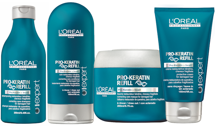Pensando nas agressões externas e químicas e nos danos causados pelo secador, chapinha e babyliss, a L’Oréal criou a nova linha “Pro-Keratin Refill”, que favorece a reposição dos componentes essenciais dos cabelos e promete ainda recuperar até 70% de sua resistência. A linha é composta por quatro produtos que podem ser usados em casa, como: xampu, condicionador, máscara e creme de pentear. E ainda o Power Kera-recharge, de uso exclusivo profissional, que é uma dose concentrada do tratamento e específica para cada tipo de cabelo e que pode ser encontrada em salões de beleza.
