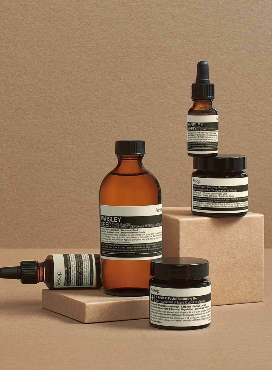 A Aesop se firmou como uma marca bem posicionada e original com foco em produtos naturais, branding minimalista e lojas autorais assinadas por arquitetos renomados.
