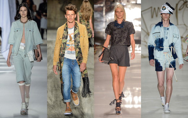Exemplos de marcas brasileiras que desfilaram jeanswear no último São Paulo Fashion Week: Ellus, Cavalera, Colcci e Amapô ©Agência Fotosite