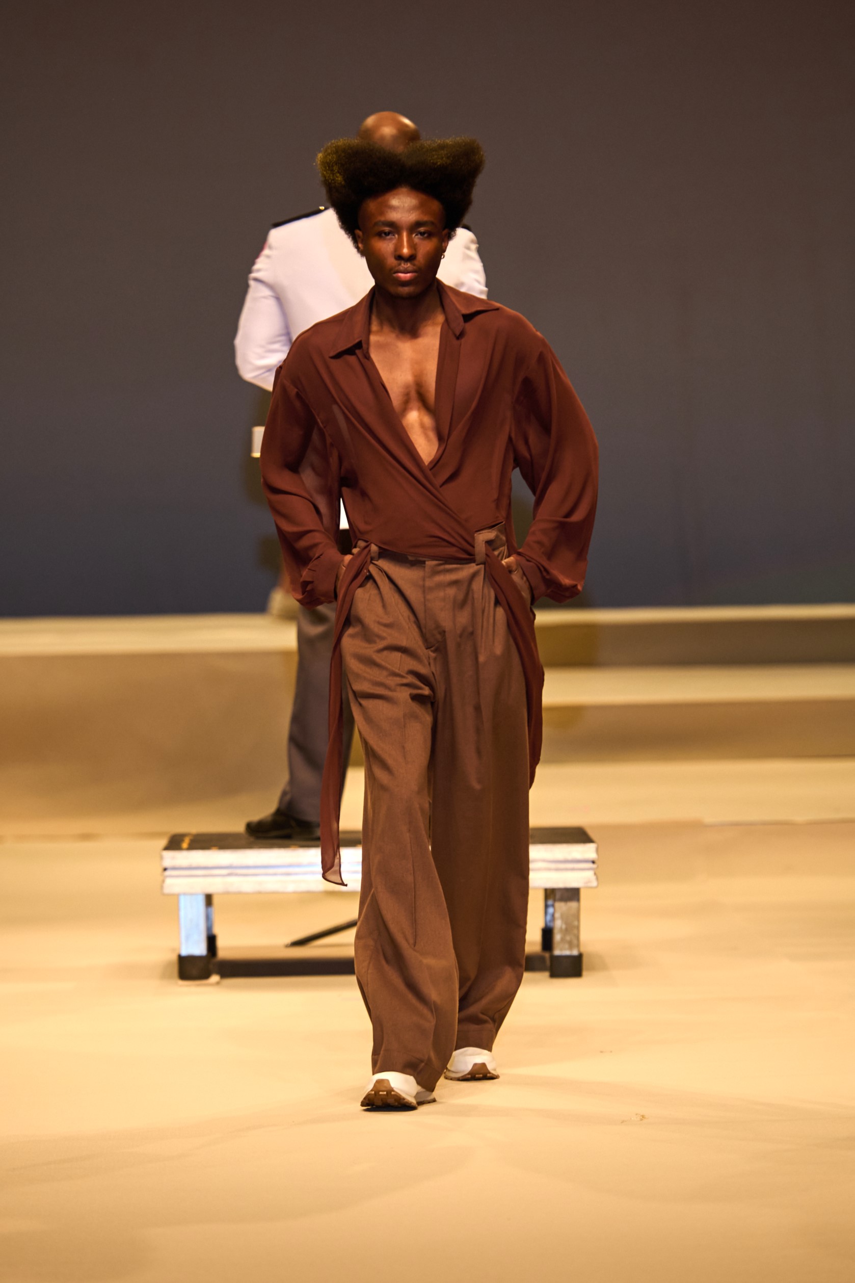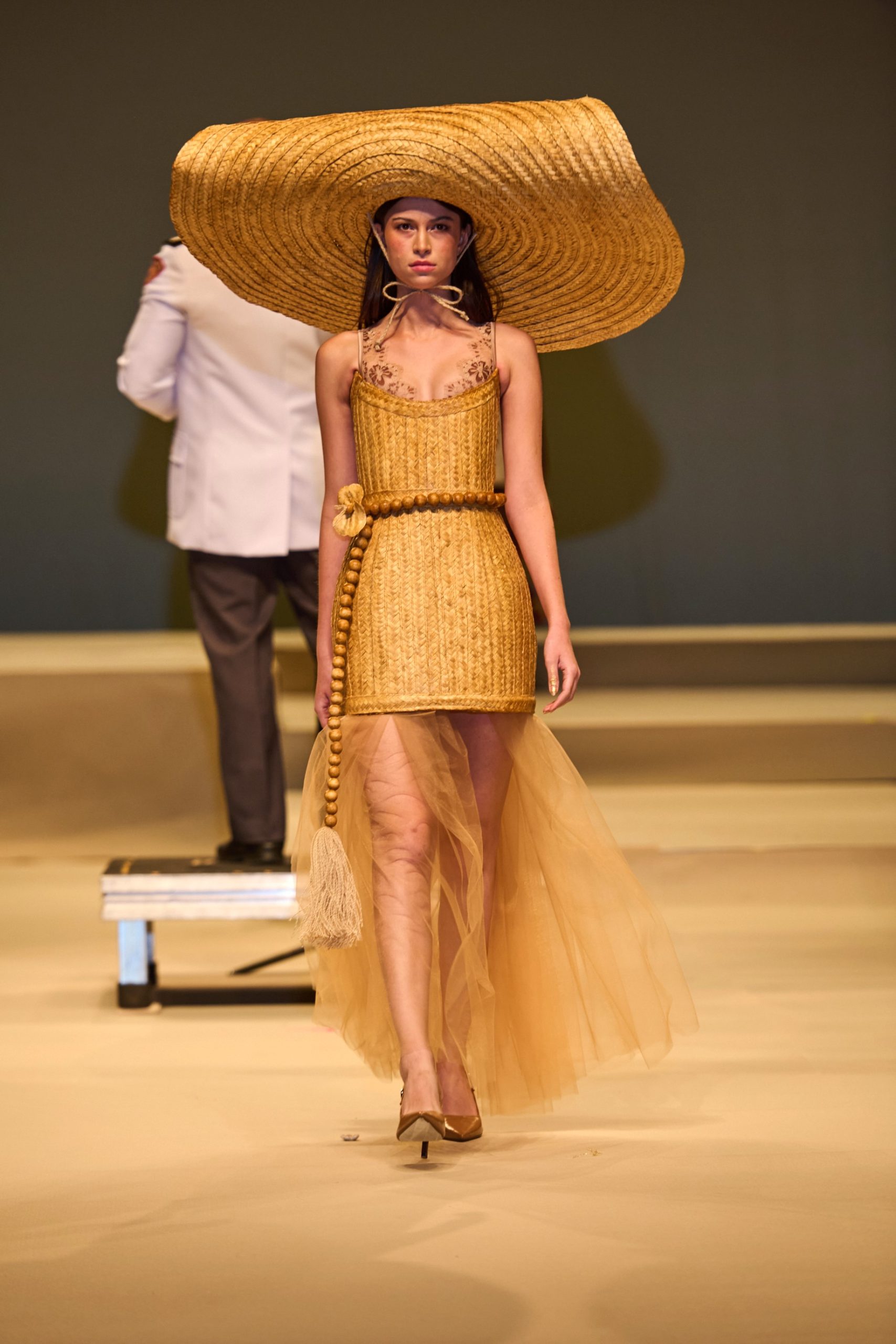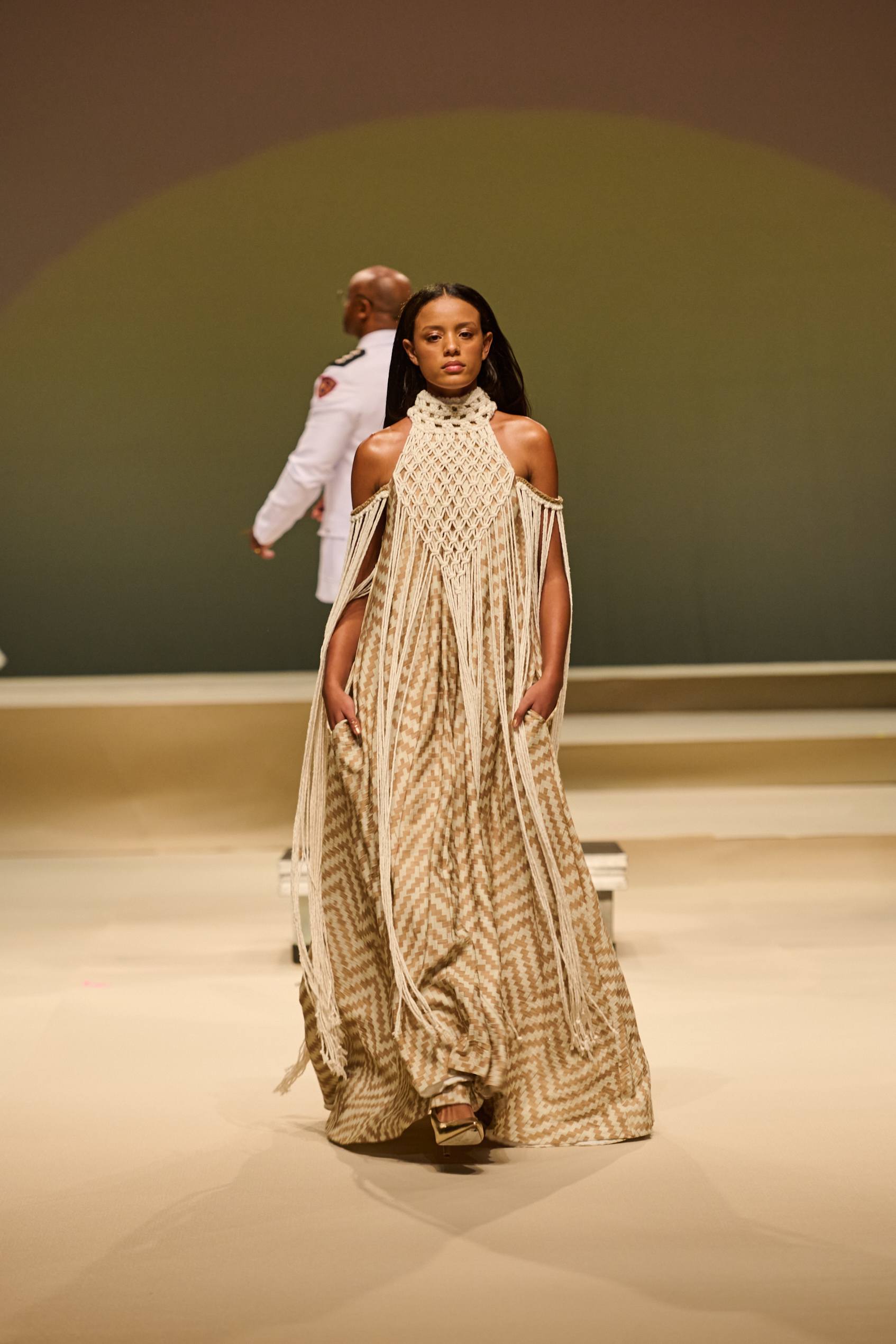 Na passarela, uma sequência de looks autorais trouxeram referências ao artesanato do Vale do Jequitinhonha, às pedras naturais, aos bordados, aos traçados e à cestaria. As produções, cada uma assinada por um designer, começaram em tons claros, como off-white, e evoluíram para nuances de marrom, caramelo, dourado, vermelho e terracota. Volumes amplos, tecidos fluidos e modelagens que favorecem o balanço dos corpos revelaram um retrato sensível e elegante do feito à mão mineiro.