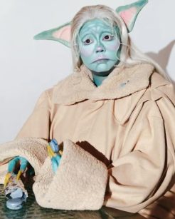 Em 2021, Lizzo surgiu irreconhecível em sua fantasia de Baby Yoda. Além da maquiagem e da roupa, a cantora também colocou detalhes no corpo para tornar a fantasia ainda mais realista, como mãos e orelhas do Yoda, personagem conhecido no filme “Star Wars”.