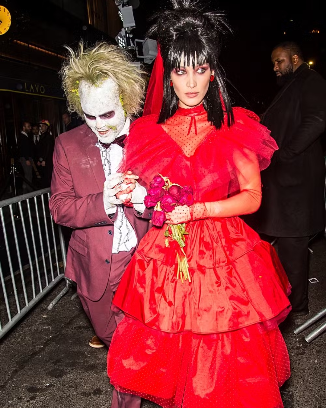 Com um visual icônico, Winnie Harlow se vestiu de Grace Jones, em 2021. Já em 2018, Bella Hadid e The Weeknd apostaram em looks inspirados no filme “Beetlejuice” para curtir o Halloween de Heidi Klum.