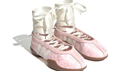 O grande destaque da colaboração é o Taekwondo Mei Ballet, que chega em versões preta e rosa, de acordo com o Hypebeast. A silhueta apresenta um cabedal de impacto, revestido por um delicado padrão floral translúcido que confere uma textura refinada à sua base técnica. No entanto, como diferencial, a Liberty London alongou as fitas do modelo para criar uma estética balletcore. Assim, estabeleceu um contraste interessante com os pingentes bordados e o estilo retrô em risca de giz presentes no restante da coleção.