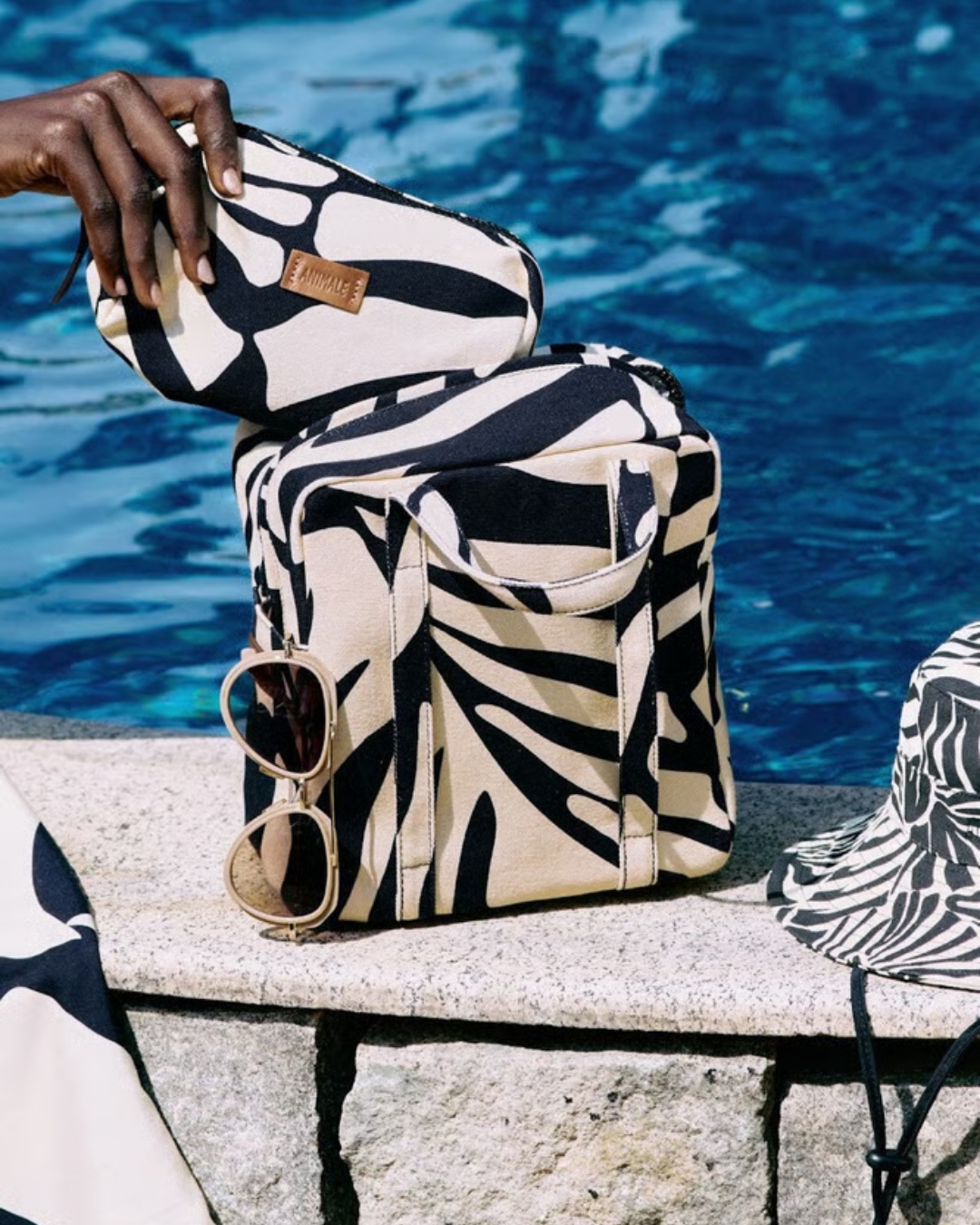 Aliás, o destaque da linha são os acessórios, como bolsas de design mais limpo, garrafas estilizadas, nécessaires funcionais, esteiras, guarda-sóis e cangas. De acordo com a FashionNetwork, a intenção é unir praticidade e expressão visual. A linha ainda incorpora elementos que remetem à sensibilidade estética da marca, mas com atenção ao uso cotidiano.
