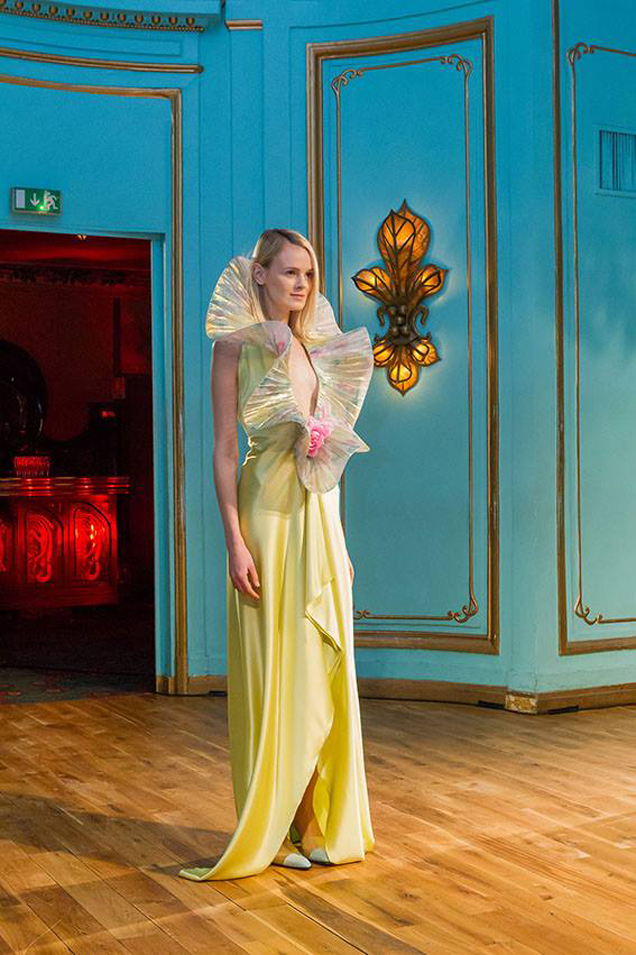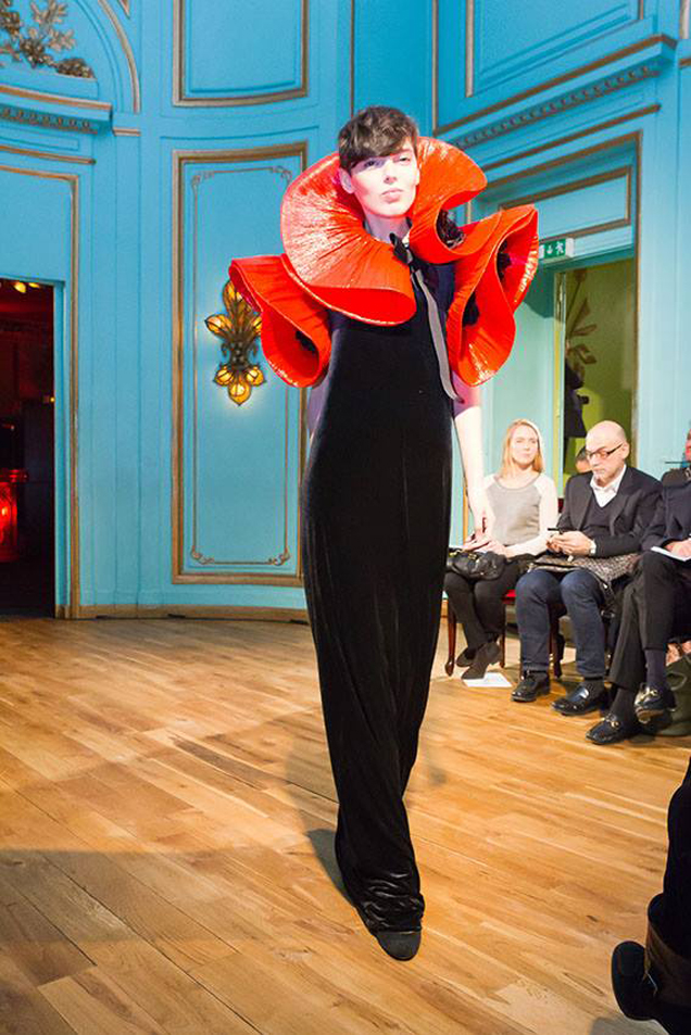 O estilista sentou na primeira fila e falou durante os 40 minutos do evento. Como Cardin não tem mais o direito de usar seu nome como marca, as coleções feminina e masculina foram apresentadas como Maxim’s de Paris. Na passarela, uma diversidade enorme de ideias que refletem a obsessão do estilista com cortes geométricos e futuristas, que o tornaram famoso nos anos 1960, mas também muita liberdade de movimento e algumas novas formas.
