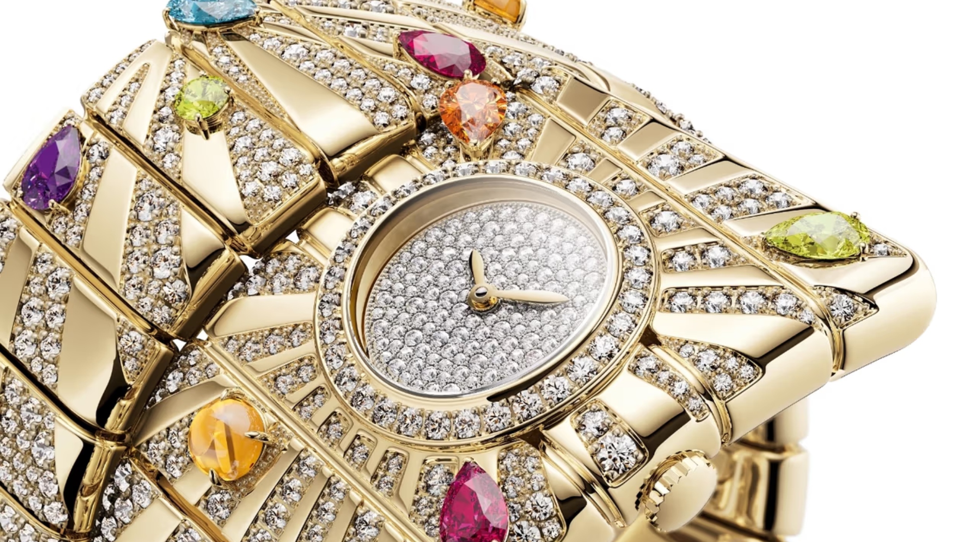 Adornada com quase 12 quilates de diamantes e uma constelação de gemas coloridas, incluindo citrinos, rubelitas, ametistas, topázios e peridotos. Esta obra técnica utiliza uma construção modular. Onde cada anel é moldado e polido antes da montagem sobre uma lâmina flexível de titânio, segundo o Hypebeast.