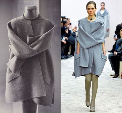 À esquerda, a versão de Geoffrey Beene, de 2004; à direita, o look apresentado na coleção de Inverno 2013 da Céline ©Reprodução