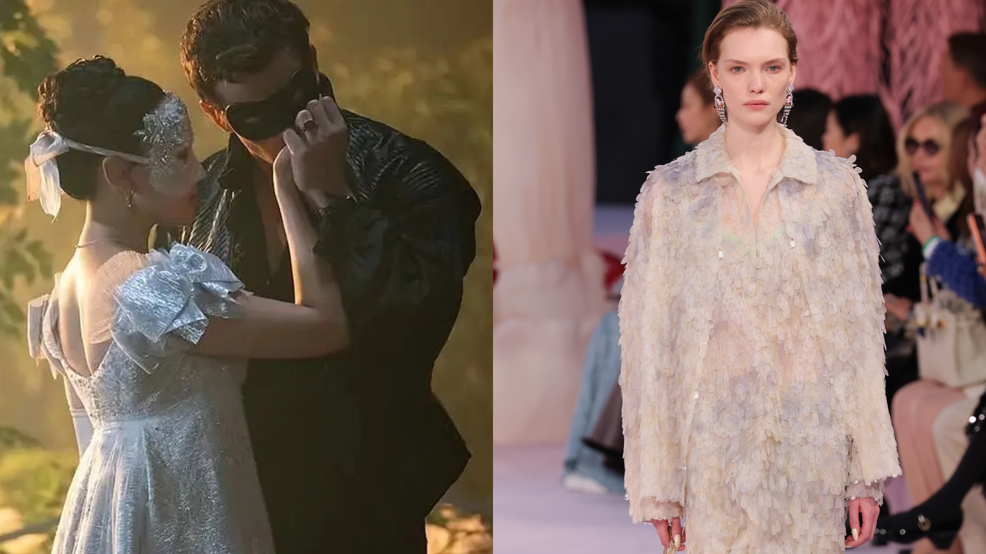 O lúdico: o desfile da Chanel trouxe referências lúdicas e oníricas (como os acessórios inspirados na natureza e formas orgânicas). Já o tão aguardado Baile de Máscaras da série apresenta uma forte inspiração no conto de fadas, trazendo figurinos que remetem à personagens como a Cinderela.