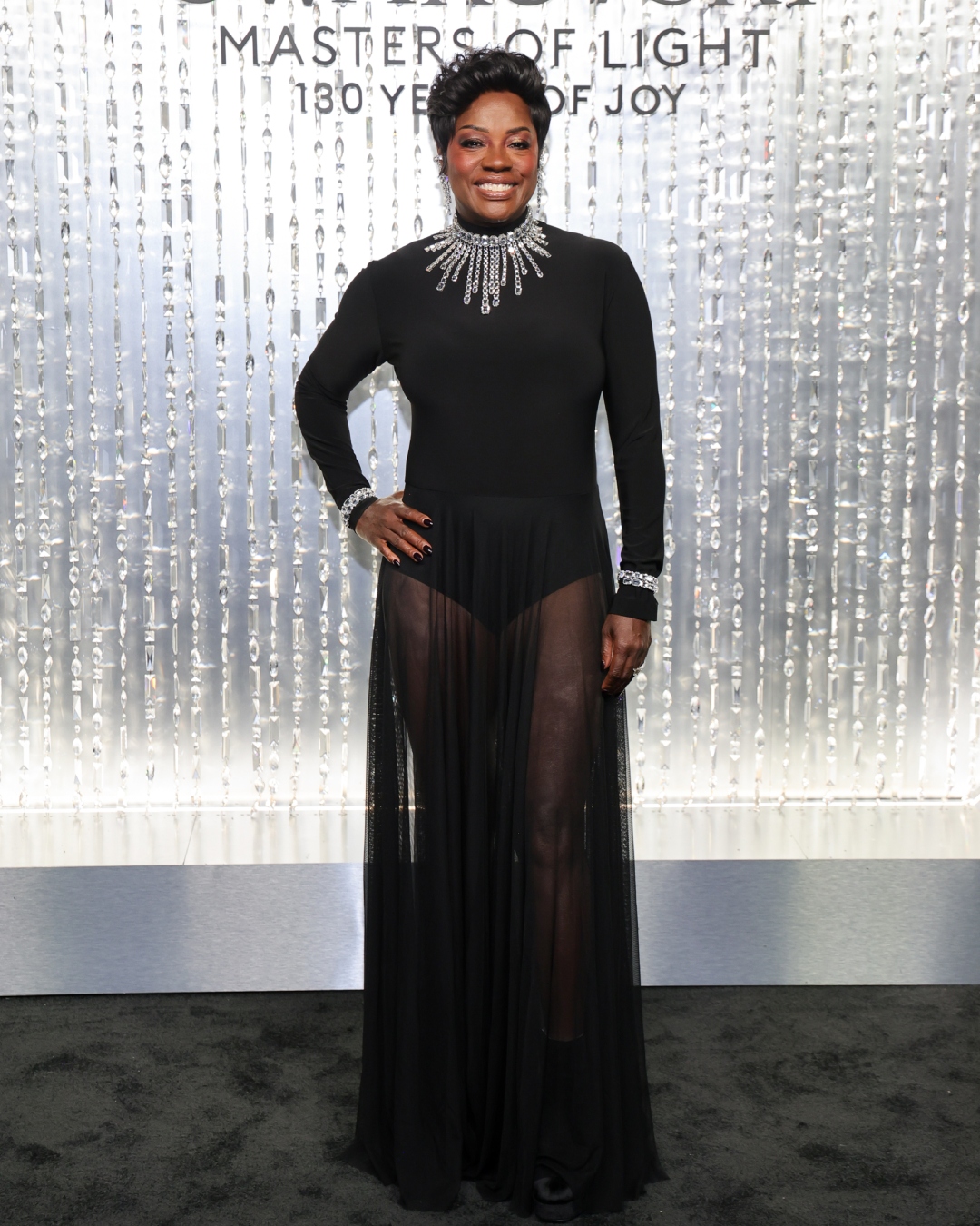 Seguindo a tendência do preto, Viola Davis também brilhou com um look poderoso, combinando transparência e brilho em uma proposta moderna e refinada. A atriz mostrou como o clássico pode, ainda sim, ganhar nova vida com toques contemporâneos.