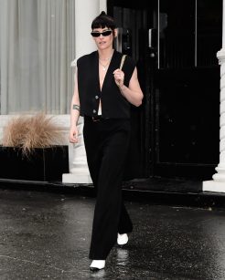 Kristen Stewart, que se tornou ícone da marca em 2013 ao ser escolhida por Karl Lagerfeld, voltou ao evento para um momento cheio de simbolismo. Sua escolha de look para a noite foi uma representação perfeita do seu estilo pessoal: um conjunto que mistura casualidade e sofisticação. Além disso, ela apostou em um colete curto e estruturado, combinado com um suéter de gola V bege e uma blusa de tricô branca por baixo. O toque final ficou por conta das calças pretas de corte solto e sapatos de salto branco com biqueira preta. Um look minimalista que não perde a elegância, como é característico da estrela.