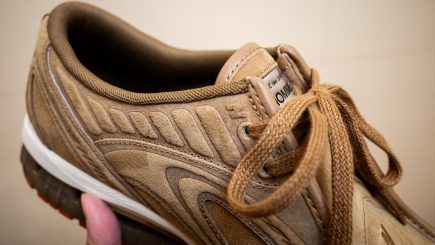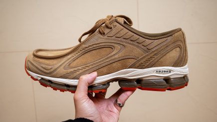 A colaboração oferece duas opções de cores distintas, cada uma delas refletindo diferentes aspectos do universo Comme des Garçons. A primeira opção apresenta uma paleta sóbria em “Black/Charcoal”, elaborada com uma combinação rica de nobuck, couro bovino e elementos sintéticos. Por outro lado, a segunda variante aposta em um cabedal “Beige/Orange”, feito também em nobuck e couro sintético. No entanto, com um toque vibrante na sola laranja, que traz uma energia vibrante ao design, segundo o Hypebeast.