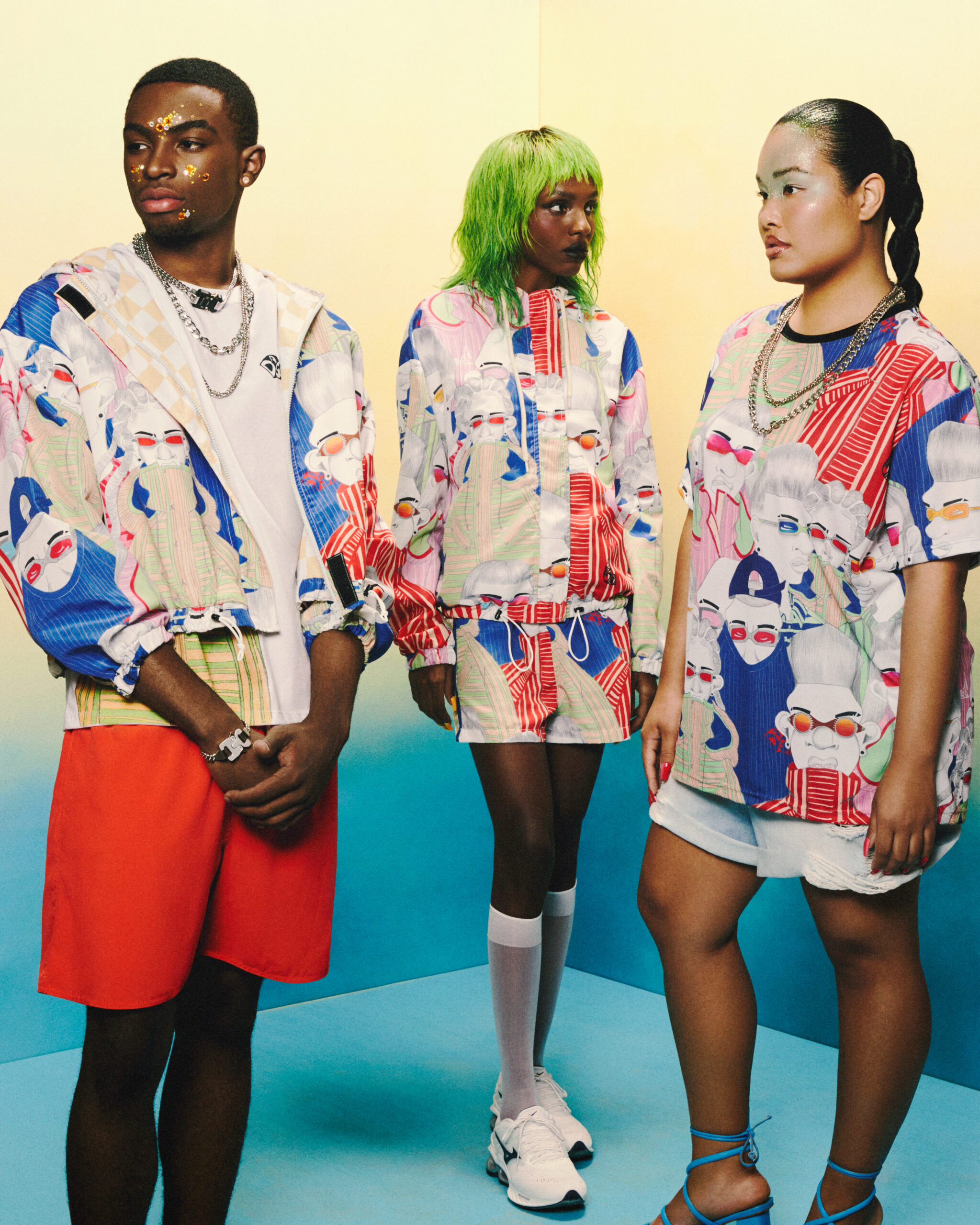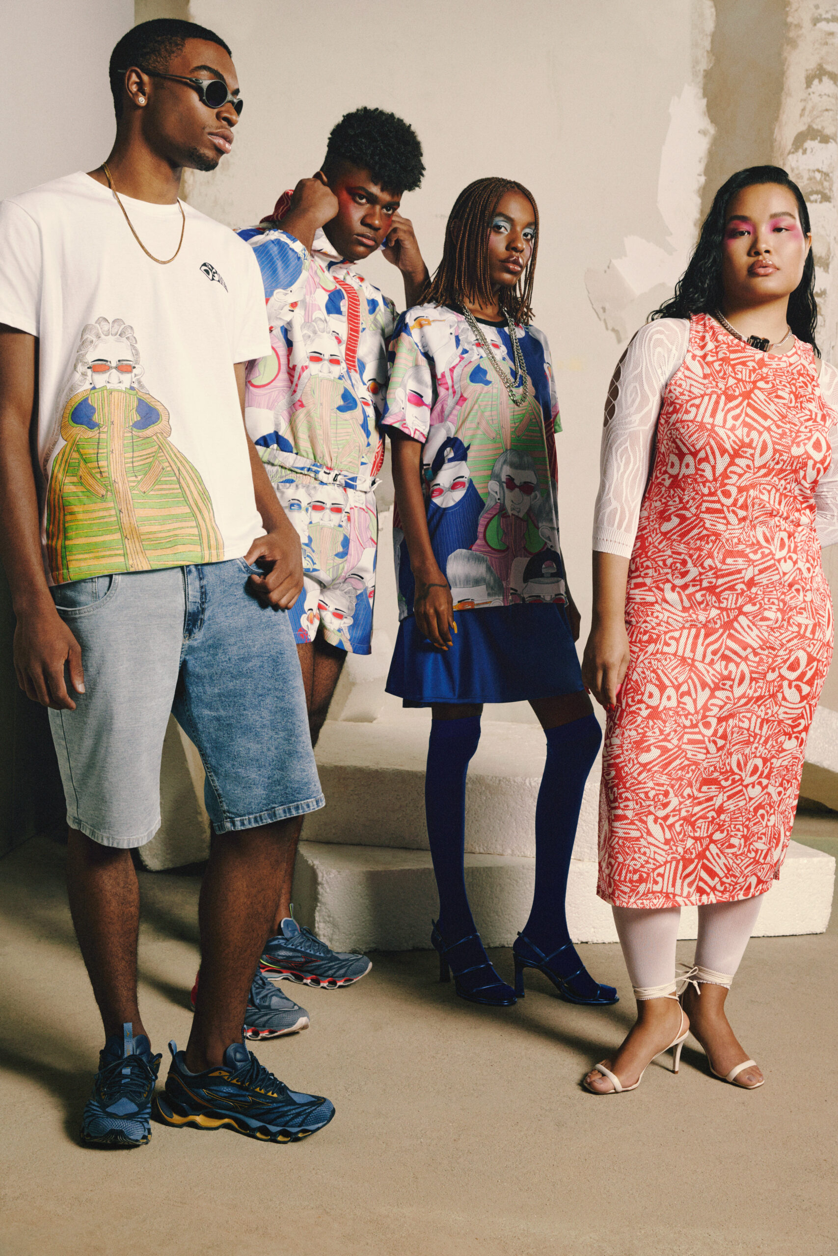 A coleção cápsula traz o funk como inspiração e as ilustrações de Gabriel estampam dois modelos de T-shirts, uma jaqueta, dois shorts e um vestido de modelagens amplas com o propósito de vestir todos os corpos.