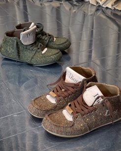 O Dior Roadie, apresentado há algumas semanas, destaca-se como um modelo de tênis versão bota de amarrar que propõe um design audacioso. Seu cabedal volumoso conta com um solado tubular contínuo, livre de emendas.