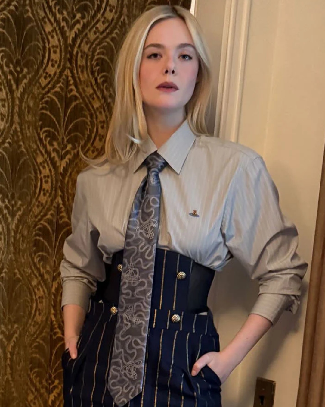 No que diz respeito à moda, a escolha de Fanning para o evento, um visual da coleção Primavera 2026 de Vivienne Westwood, representa uma mudança em sua estética habitual. Conhecida por seu estilo suave e etéreo, que remete ao glamour da Old Hollywood, esta nova direção se revela intencional e revigorante para a jovem atriz.