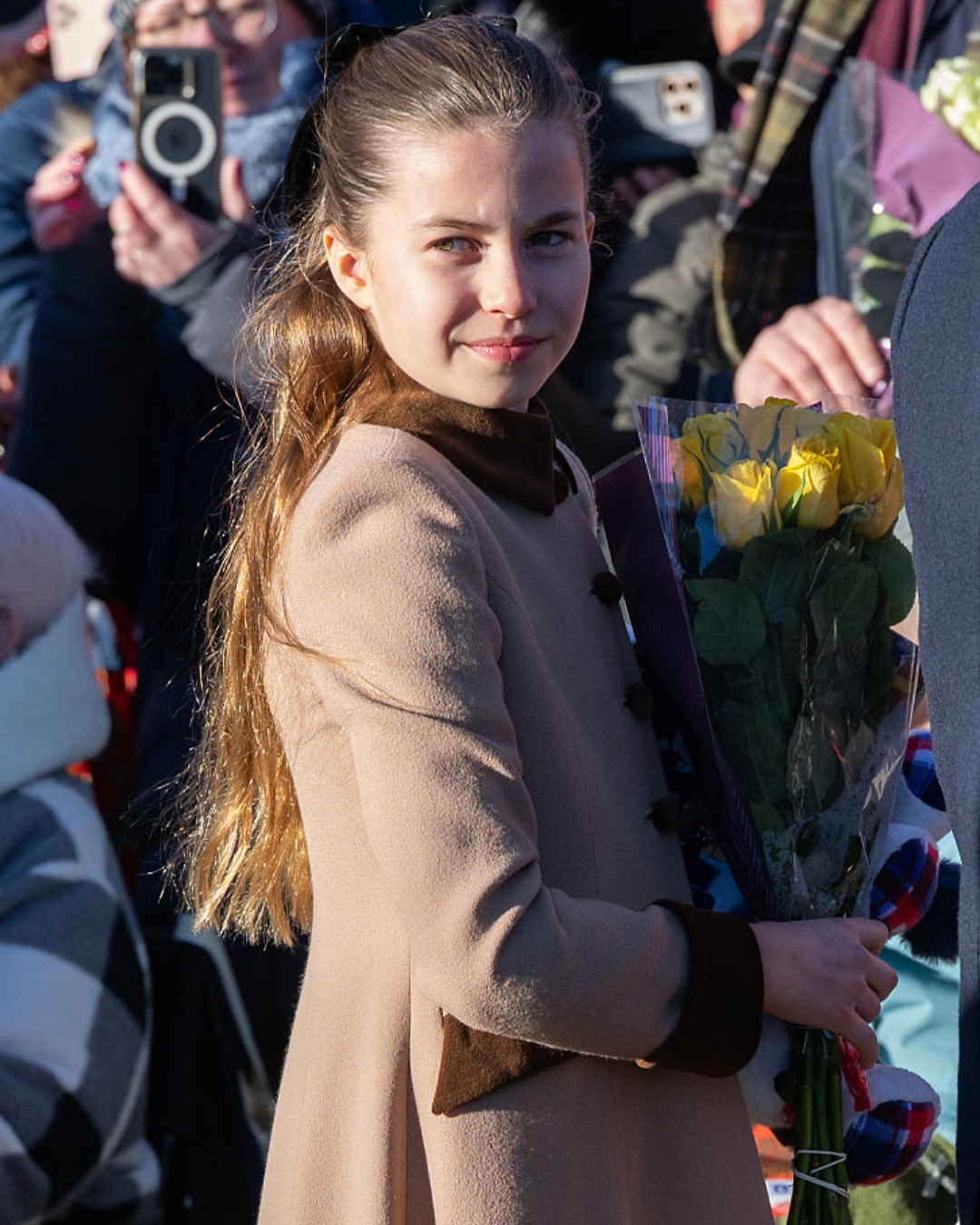 A Princesa Charlotte, acompanhada de seus irmãos, o Príncipe George e o Príncipe Louis, participou de uma rara aparição pública na manhã de Natal. Assim, marcando a tradição real de comparecer ao serviço natalino em Sandringham. A jovem princesa, de apenas 10 anos, destacou-se com um elegante vestido de casaco em tom bege, com colarinho e acabamentos marrons, que harmonizou com o traje da mãe, Kate Middleton. Para completar o visual, Charlotte optou por um laço escuro no cabelo.