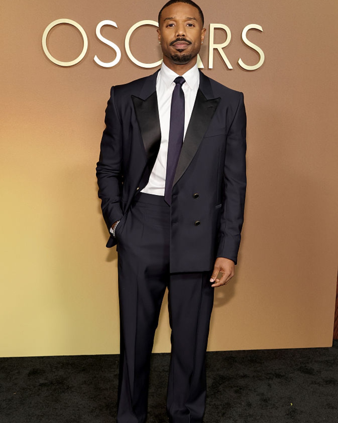 Entretanto, após meses filmando em Londres, Michael B. Jordan retornou aos Estados Unidos e apresentou-se em um momento elegante com um smoking azul-marinho de dois botões customizado pela Louis Vuitton.