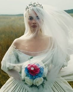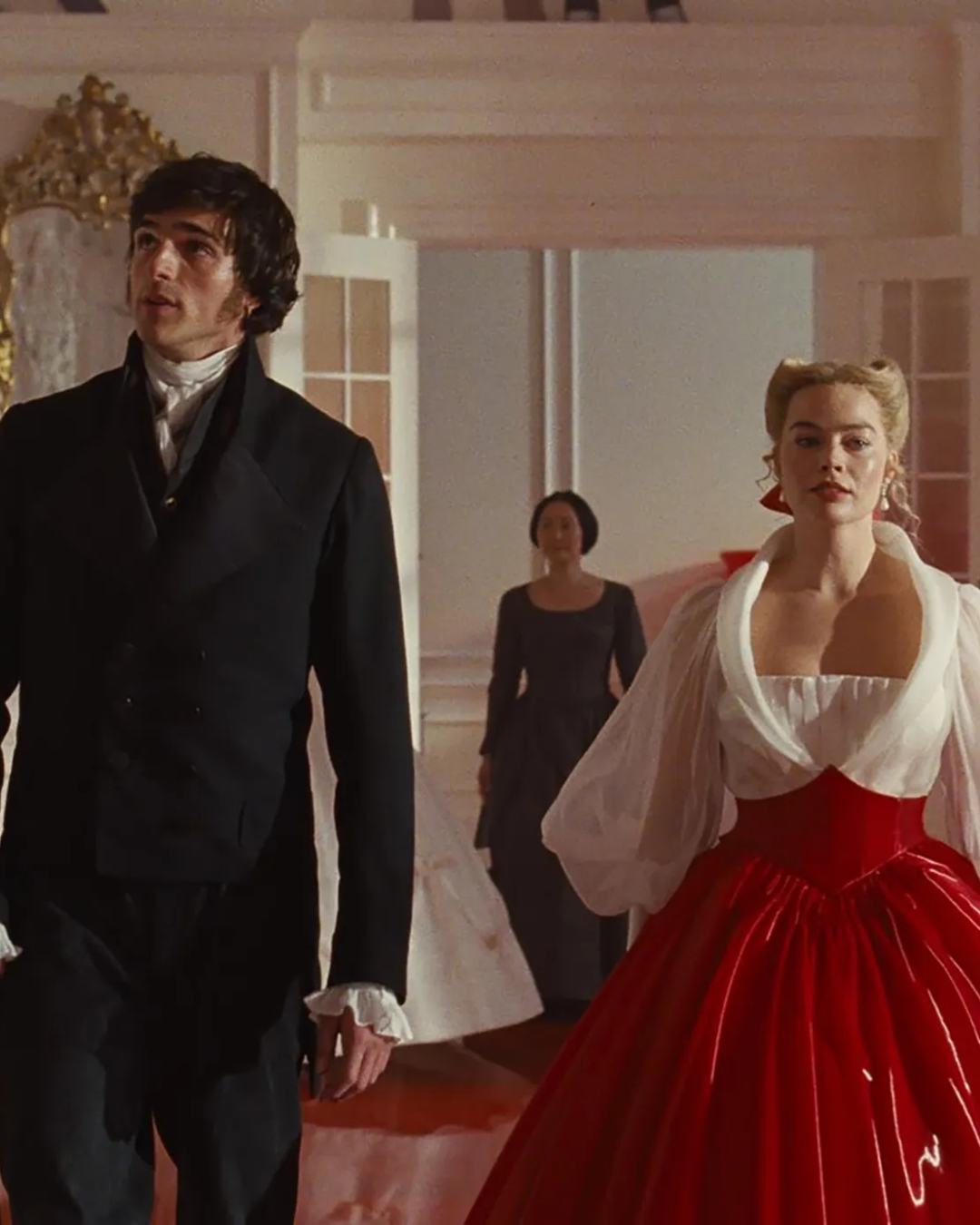 O processo de criação não seguiu a tentativa de replicar fielmente o período do século 19. Durran optou por uma abordagem que mistura moda histórica com cortes e texturas modernas, incluindo referências que vão do Tudor ao vitoriano. Além de inspirações mais amplas como moda dos anos 1950 e estética contemporânea. Entretanto, essa escolha deliberada de “anacronismo” transforma os figurinos em elementos narrativos. Capazes de comunicar mais do que simplesmente o tempo em que a história se passa.