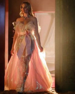 Entre os elementos mais notórios estão peças que brincam com brilho e textura: um dos vestidos vermelhos de Cathy, feito em tecido sintético de alto brilho que muitos comentaram nas redes, cria uma sensação visual forte ao refletir cenários e luzes em cena. Aliás, outro look marcante é aquele pensado para a luz da lua, em preto com acabamento que parece quase luminescente quando iluminado pelo contexto noturno da história.
