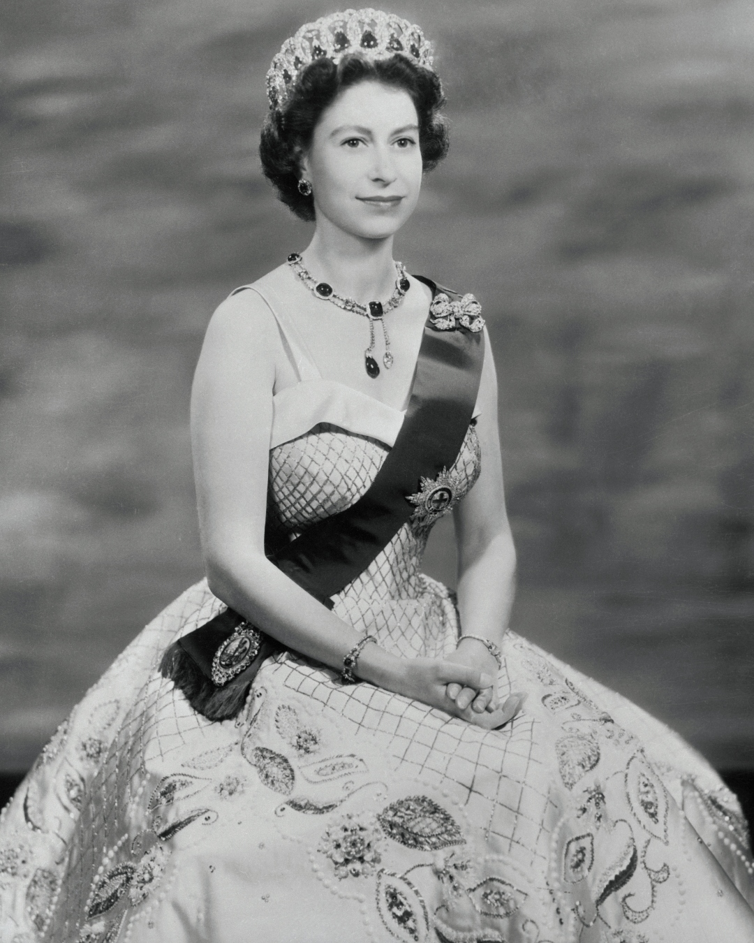 Será possível ver uma das peças de alta-costura mais antigas de seu guarda-roupa: o vestido de dama de honra em lamê prateado e tule, desenhado por Edward Molyneu. Com apenas 8 anos, ela usou a peça no casamento de seu tio, o Duque de Kent, com a Princesa Marina da Grécia, em 1934.