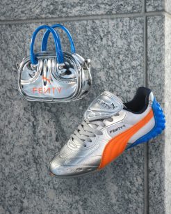 A coleção também brinca com releituras inesperadas. Como por exemplo, a Goalie Jersey transforma a tradicional camisa de goleiro em peça fashion. Com caimento relax e branding prateado e super elegante. Nos acessórios, a Pocket Bag surge repaginada com acabamento prateado espelhado e detalhes em azul e laranja. Enquanto o Fenty x Puma Scarf traz uma estampa dupla face em seda, perfeito para dar aquele toque sofisticado ao outfit.