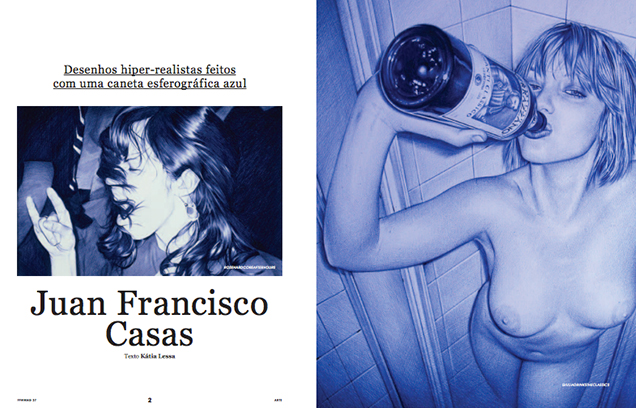 Palavras não são suficientes para contar o que é o incrível trabalho de Juan Francisco Casas, que faz essas ilustrações com caneta esferográfica. Tem que pegar a revista na mão, olhar bem de perto e ainda assim não acreditar!