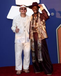Já João Gomes trouxe a força das raízes brasileiras com um conjunto de linho, cheio de detalhes artesanais. As peças exibiam bordados desenhados por Helô Rocha e produzidos à mão pela Casa das Bordadeiras de Timbaúba dos Batistas (RN), dentro de uma parceria com o Instituto Riachuelo. Além do look cheio de identidade, ele ainda comemorou seu primeiro Grammy pelo álbum “Dominguinho”, criado em colaboração com Mestrinho e Jota.pê.
