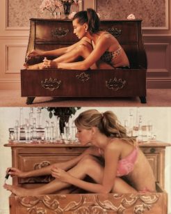 Para dar início à sua campanha de Dia dos Namorados, a marca contratou Bieber, que estrela uma fotografia lúdica onde aparece pintando as unhas dos pés enquanto se encontra dentro da gaveta de uma cômoda. Essa imagem faz referência à capa de um catálogo de 2001 que promovia uma linha de fragrâncias da Victoria’s Secret, na qual Bündchen também posava de forma semelhante.