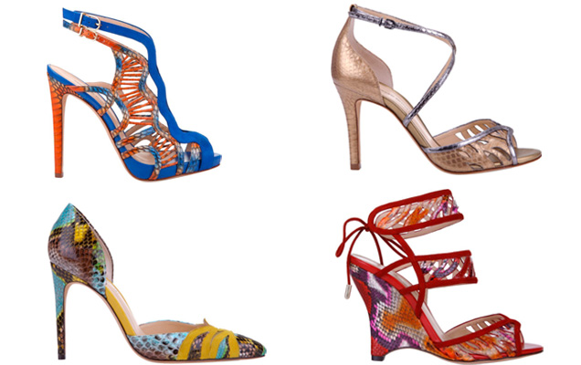 Os elementos que compõem o quadro são facilmente identificados nos sapatos. Estão lá a cobra rosa, o verde e as formas das folhagens, o azul da flor-de-lótus, o contraste entre o dourado das asas e o prateado do peito de um dos pássaros. A coleção explora novas linhas e formatos, mais elegantes e naturais, que acompanham movimentos da natureza. As peças serão expostas em uma mesa decorada com flores.