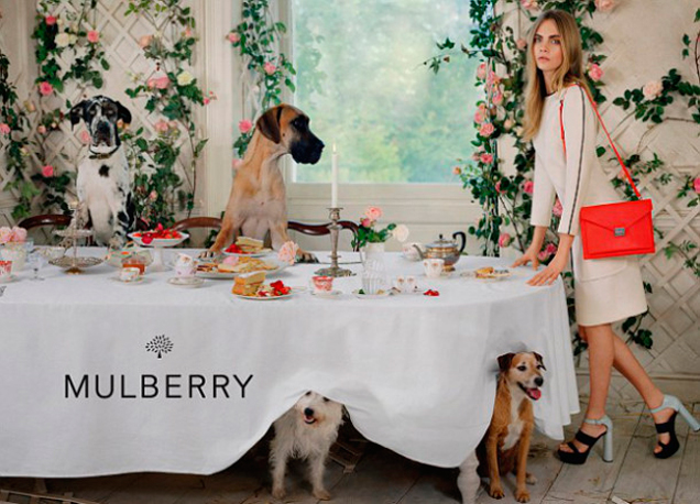 Mulberry: a grife inglesa faz uma brincadeira com a tradição e convida para o chá da tarde a modelo Cara Delevingne, cães, corujas, pôneis e outros modelos animais (literalmente). De autoria de Tim Walker, as fotos são lindas e valem também pela piada.