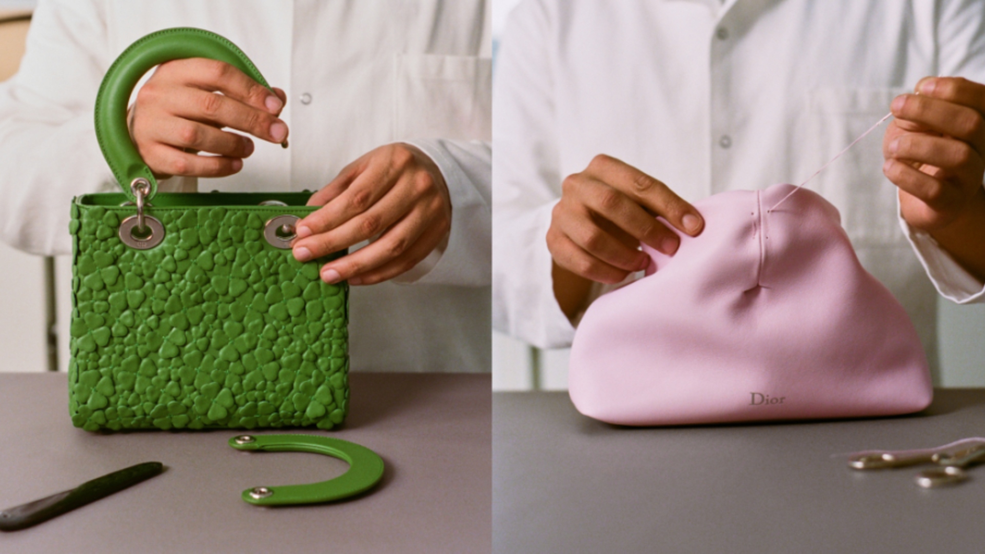 A clássica bolsa Lady Dior ganhou duas versões mini inspiradas em amuletos da sorte. A primeira delas, a Mini Lady Dior Clover, apresenta trevos de quatro folhas bordados — uma homenagem à superstição de Christian Dior e também às raízes irlandesas de Anderson. Disponível em preto, rosa e verde, a peça conta ainda com o detalhe de uma joaninha e os tradicionais pingentes com as letras da marca. No entanto, a Mini Lady Dior Buttercup aposta no relevo, trazendo flores amarelas conhecidas como botões-de-ouro em toda a sua superfície. Aliás, são acompanhadas por uma pequena abelha, símbolo histórico da grife.