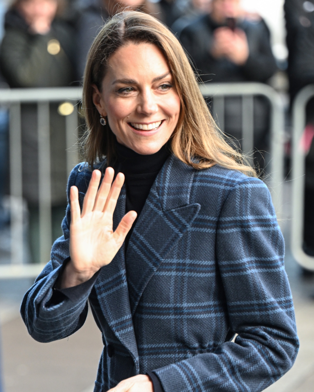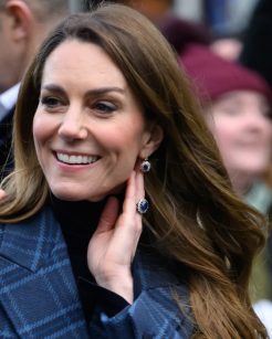 Na sequência, os acessórios assumiram papel central. Kate coordenou as joias com o tom azulado do casaco e trouxe um toque emocional ao styling. Os brincos de diamante e safira, que pertenceram à princesa Diana, chamaram atenção por todo significado. Enquanto os anéis, de noivado e de casamento, completaram a composição com equilíbrio. De acordo com a Harper’s Bazzar US, o conjunto ajudou a reforçar a ideia de continuidade e herança, tão presente nas escolhas de estilo da princesa.