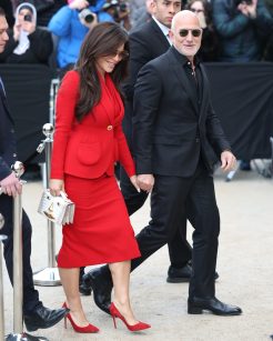 Ao desembarcarem no Petit Palais para o desfile de Primavera/Verão 2026 da Schiaparelli, Lauren Sánchez e Jeff Bezos atraíram todos os olhares com produções coordenadas e sofisticadas. Apostando em um visual monocromático impactante, a ex-jornalista escolheu um conjunto vermelho vibrante da grife romana.