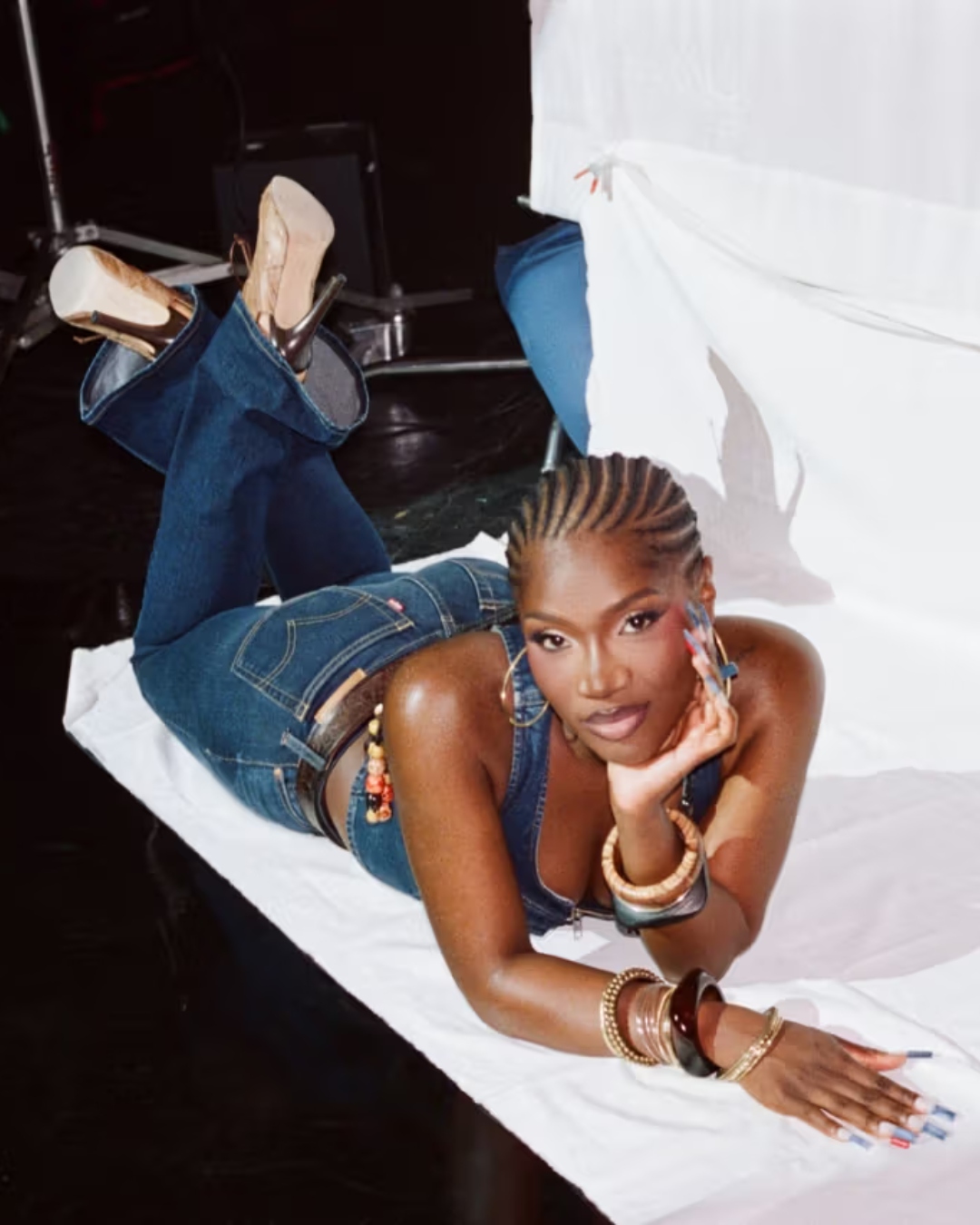 Entre os nomes mais destacados está a rapper e cantora Doechii, que protagoniza momentos marcantes do comercial usando jeans Low Slim Boot cut. Trazendo energia e coreografia envolvente ao ritmo de “Get Up Offa That Thing”, de James Brown. O elenco inclui atletas como o MVP da NBA, Shai.