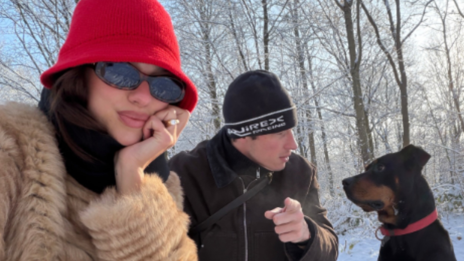 Curtindo o inverno no hemisfério norte, Dua Lipa compartilhou alguns registros de momentos na neve em suas redes sociais. A cantora surgiu curtindo com seu noivo, Callum Turner, e seu cachorro, mas, o que chamou atenção foi o look escolhido para o frio.