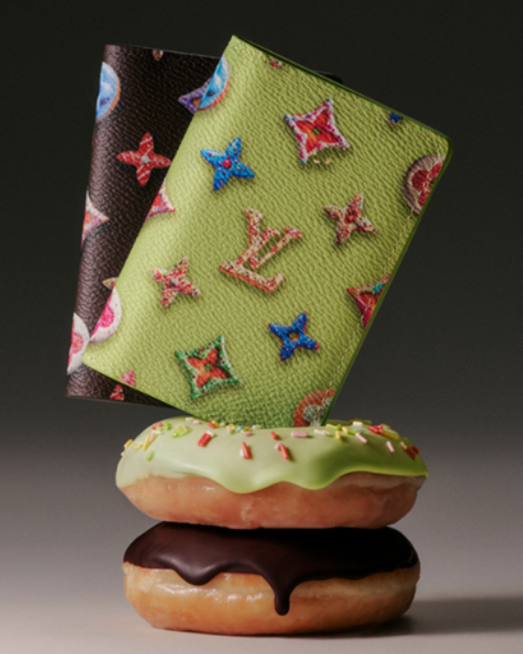 O tradicional Monograma da marca surge reinterpretado de forma inusitada: as clássicas letras LV e as flores ganham formato de donuts ilustrados. Assim, criando o padrão Monogram Donuts. O resultado é uma estética vibrante, divertida e ao mesmo tempo refinada, que mostra a capacidade da Louis Vuitton de atualizar seus códigos históricos sem perder a herança.