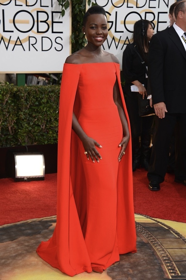 A atriz Lupita Nyong’o foi uma das mais bem vestidas no tapete vermelho da 71ª edição do Globo de Ouro, premiação realizada neste domingo (12.01) em Beverly Hills, nos Estados Unidos. A queniana, que concorreu a melhor atriz coadjuvante por  “12 Anos de Escravidão”, encabeçou nosso Top 10 e ganhou nosso “prêmio” de mais bem vestida da noite. No ano passado, ela já havia aparecido com um vestido amarelo J. Mendel e com um Lanvin preto e branco, decotado e fluído. Então, não foi surpresa quando ela surgiu em um lindo Ralph Lauren vermelho, de linhas geométricas e com uma espécie de capa (lembrou o Tom Ford branco de Gwyneth Paltrow). Lupita não ganhou o Globo de Ouro como atriz coadjuvante, que ficou com Jennifer Lawrence (“Trapaça”), mas ela já ganhou o coração da moda. Fez ensaios para a “W” e está na campanha de Verão 2014 da Miu Miu.