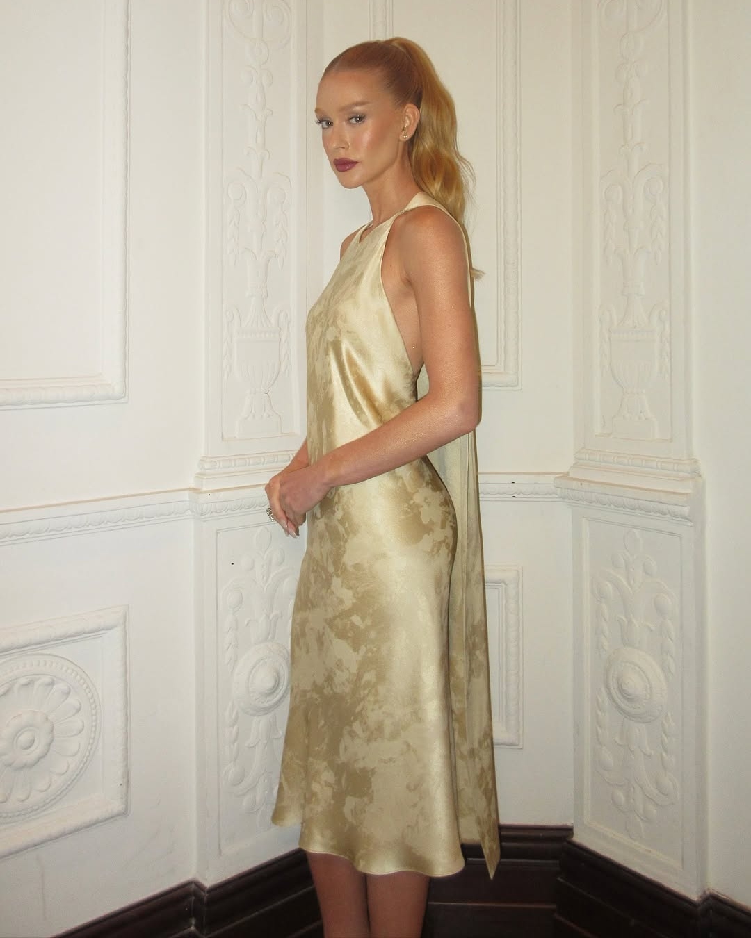 A atriz Marina Ruy Barbosa foi destaque em um evento promocional para sua nova série, “Tremembé”, onde optou por um elegante slip dress da marca The Row, conhecida por sua sofisticação minimalista.