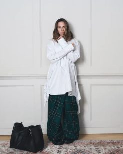 A bolsa surge junto a peças da coleção Resort Primavera Verão 2026, onde a alfaiataria estruturada se combina com volumes mais suaves. Permitindo uma nova interpretação de itens cotidianos sob uma perspectiva experimental de design.